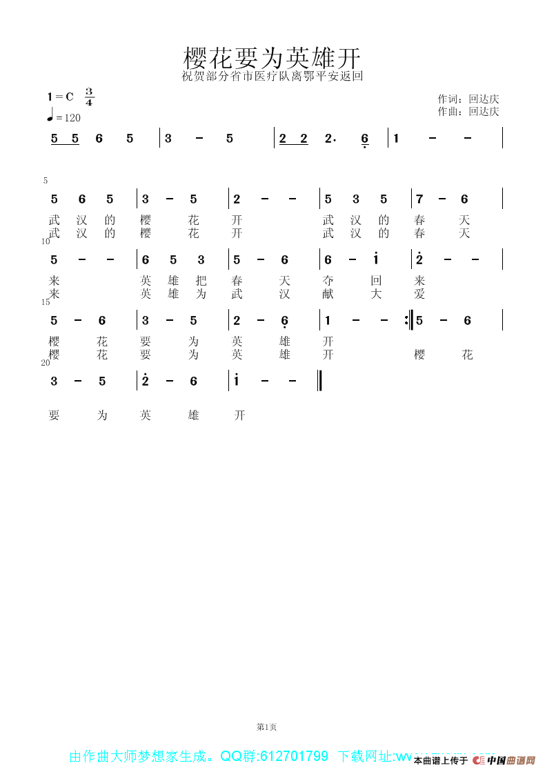 提示:在曲谱图片上单击右键,选择“图片另存为...”即可将曲谱保存到您的电脑中,打印时候可将图片插入到WORD中,调整合适大小打印即可。