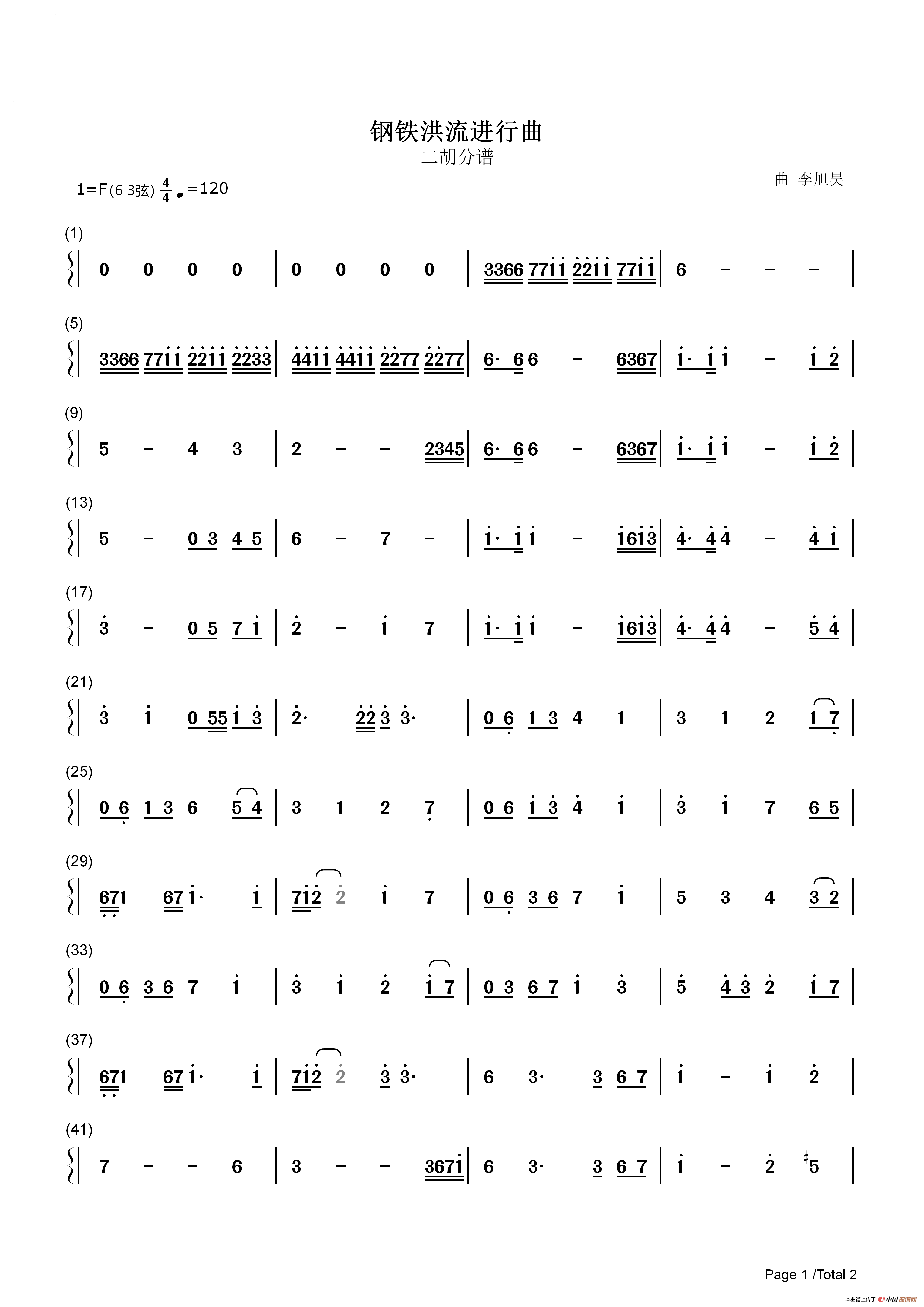 提示:在曲谱图片上单击右键,选择“图片另存为...”即可将曲谱保存到您的电脑中,打印时候可将图片插入到WORD中,调整合适大小打印即可。