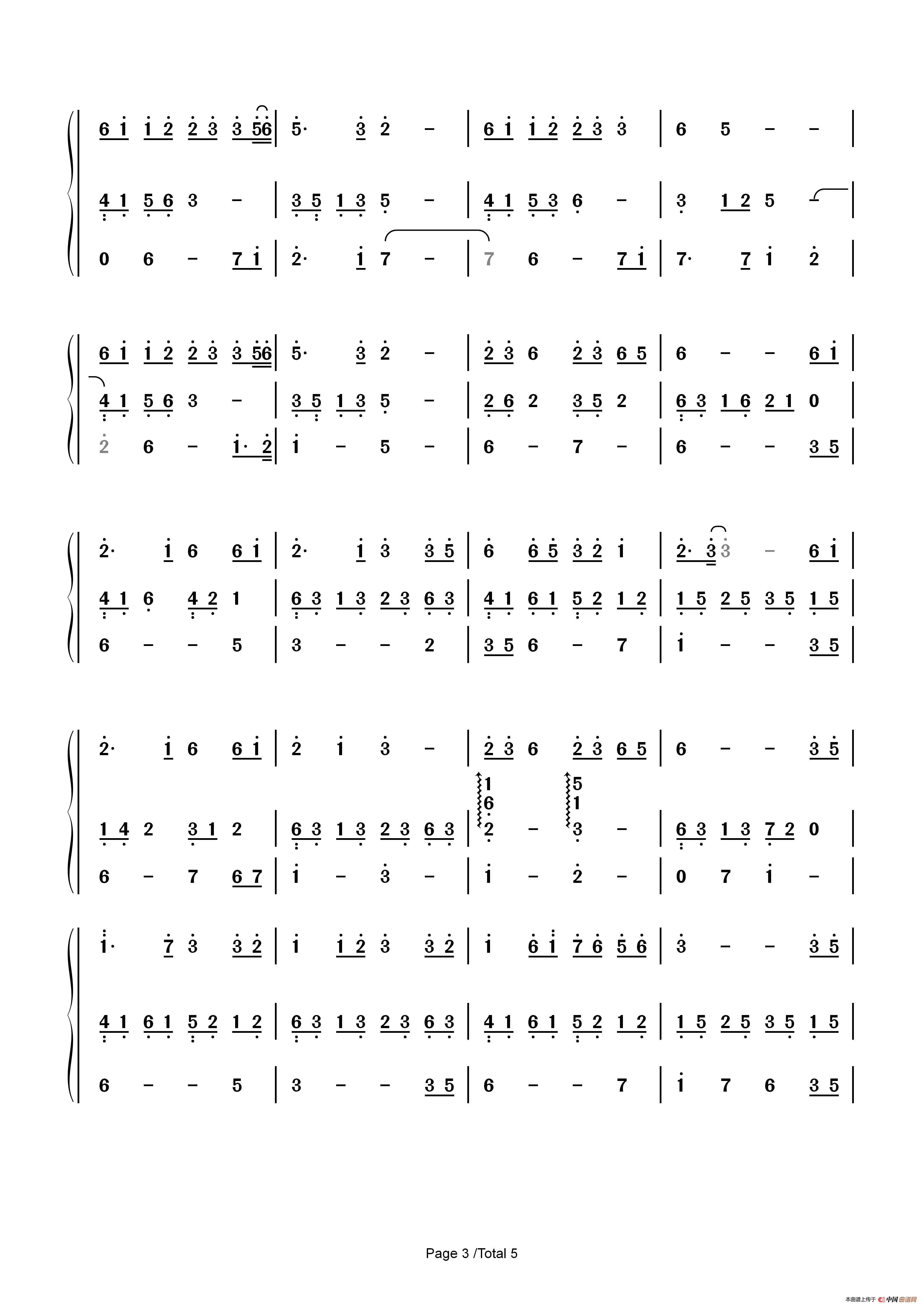 提示:在曲谱图片上单击右键,选择“图片另存为...”即可将曲谱保存到您的电脑中,打印时候可将图片插入到WORD中,调整合适大小打印即可。