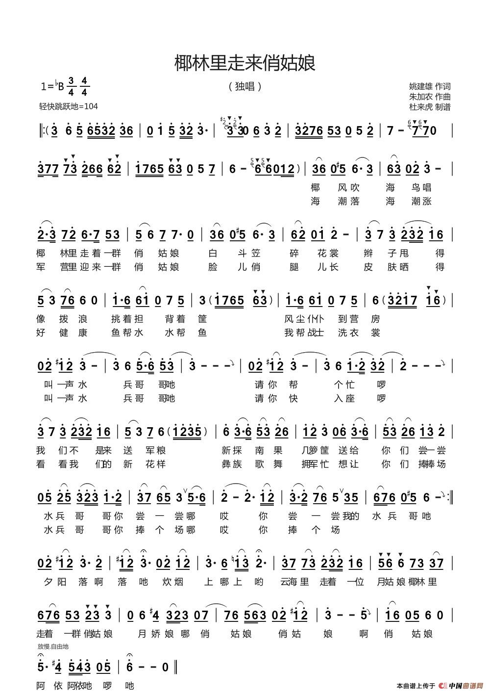 关于《椰林里走来俏姑娘》曲谱的评论