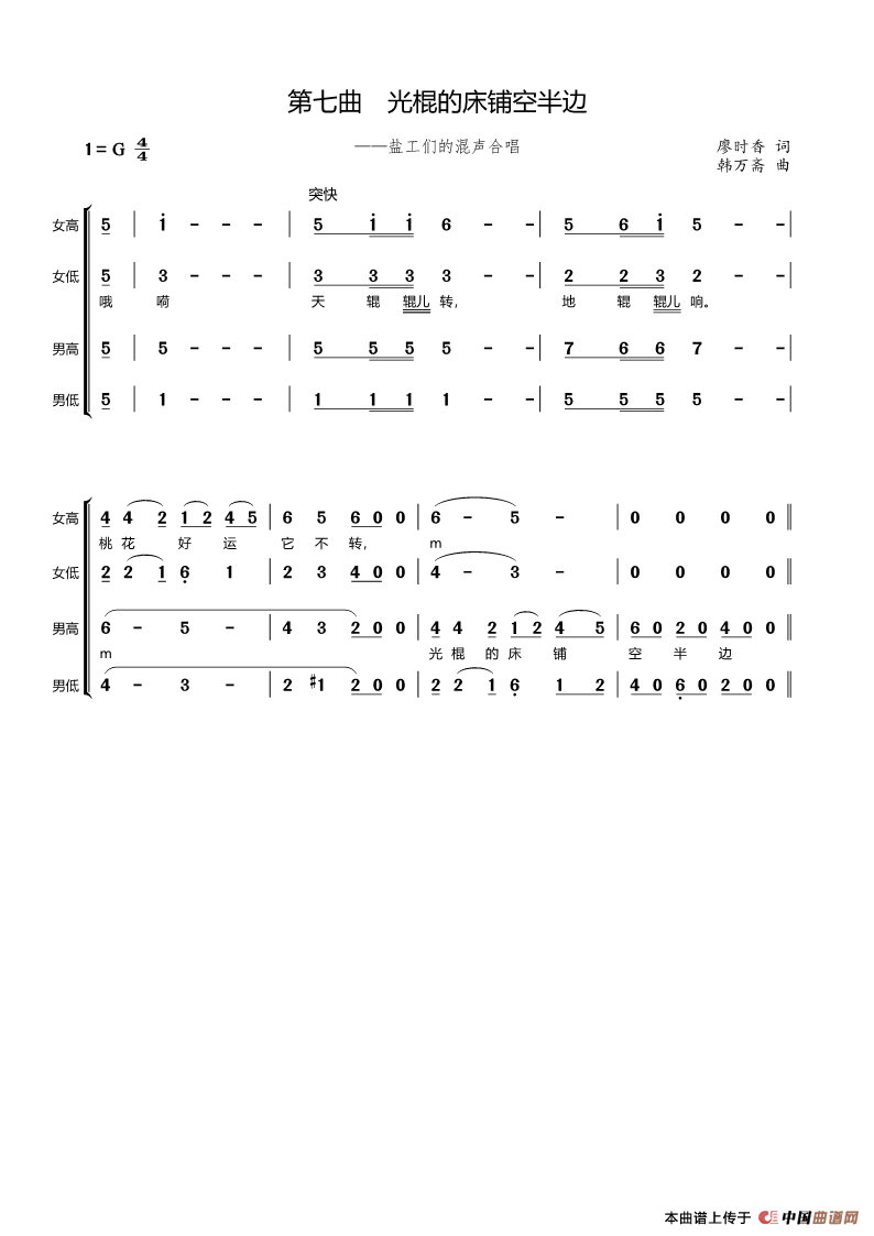 关于《第七曲 光棍的床铺空半边》曲谱的评论