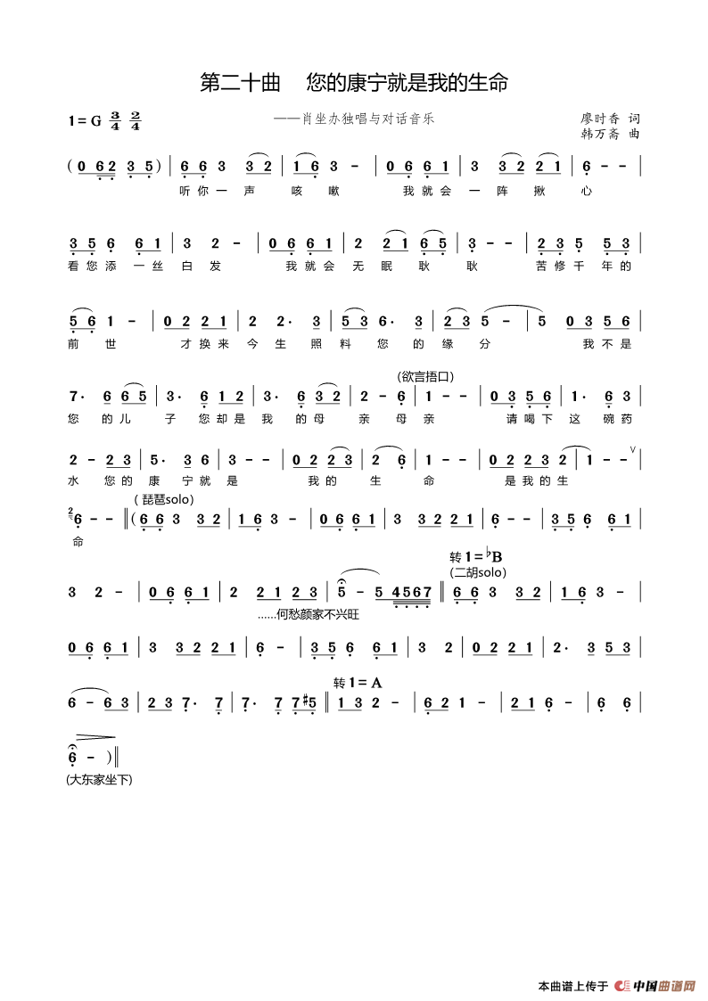 关于《第二十曲您的康宁就是我的生命》曲谱的评论