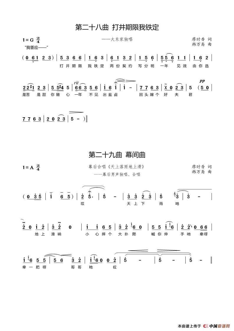 关于《第二十八曲打井期限我铁定、二十九曲》曲谱的评论