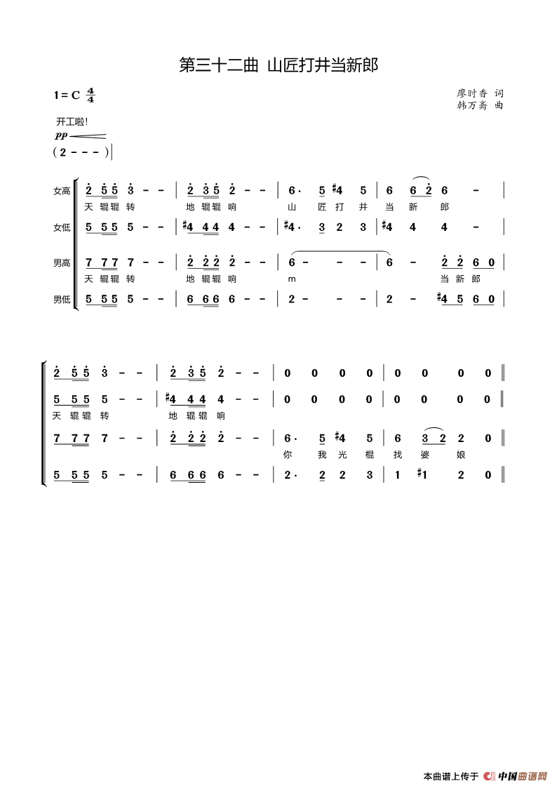 关于《第三十二曲 山匠打井当新郎》曲谱的评论