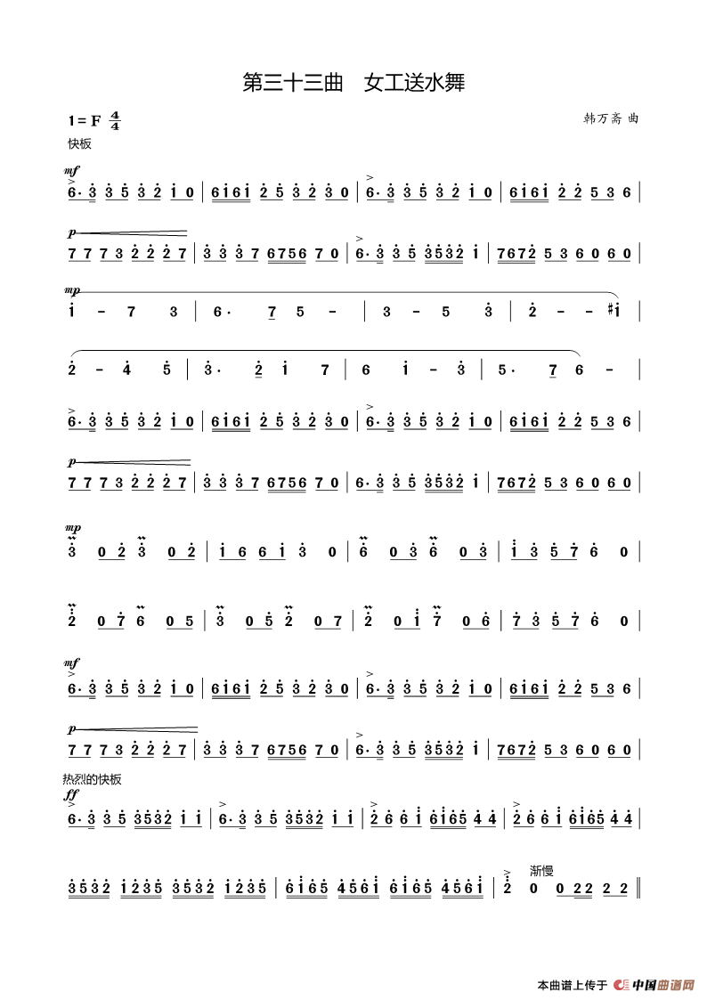 提示:在曲谱图片上单击右键,选择“图片另存为...”即可将曲谱保存到您的电脑中,打印时候可将图片插入到WORD中,调整合适大小打印即可。