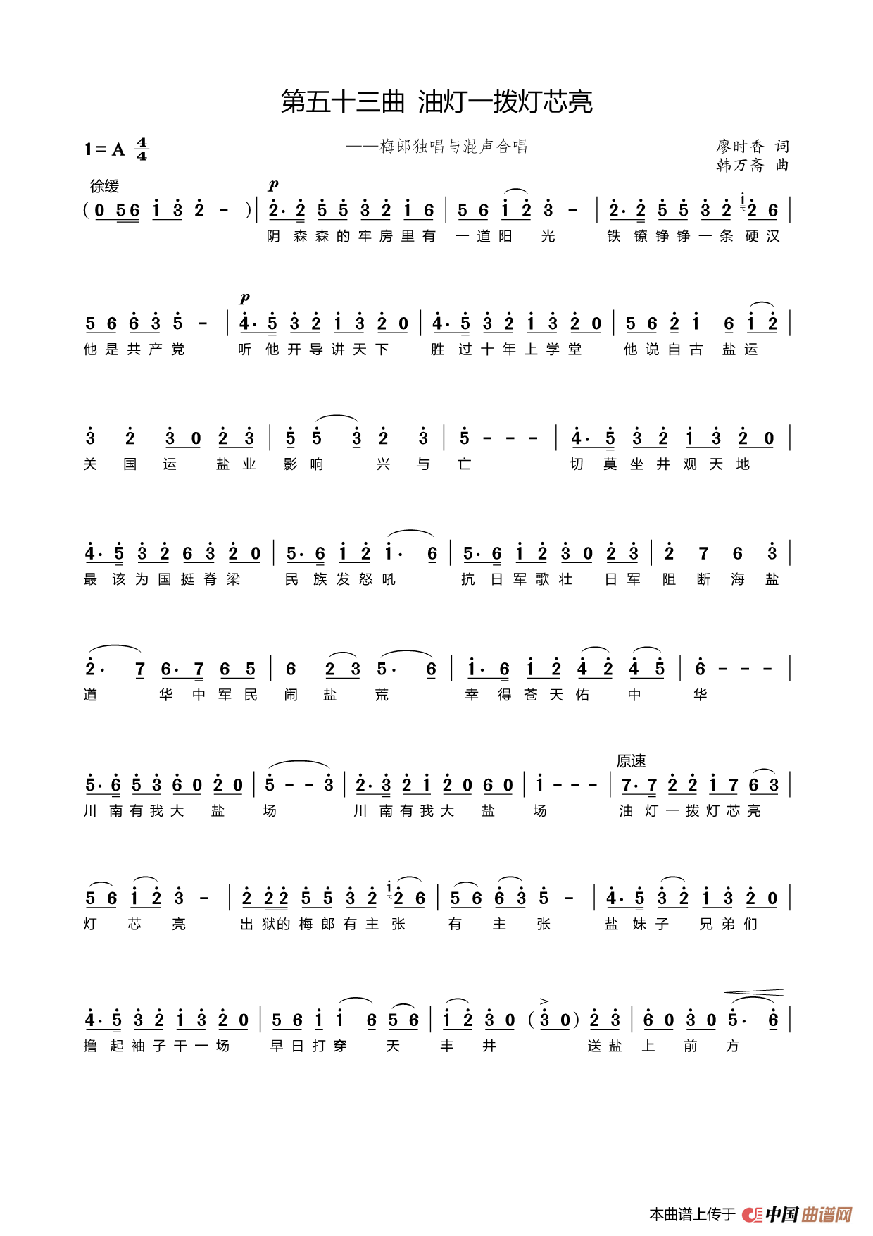 关于《第五十三曲油灯一拨灯芯亮》曲谱的评论