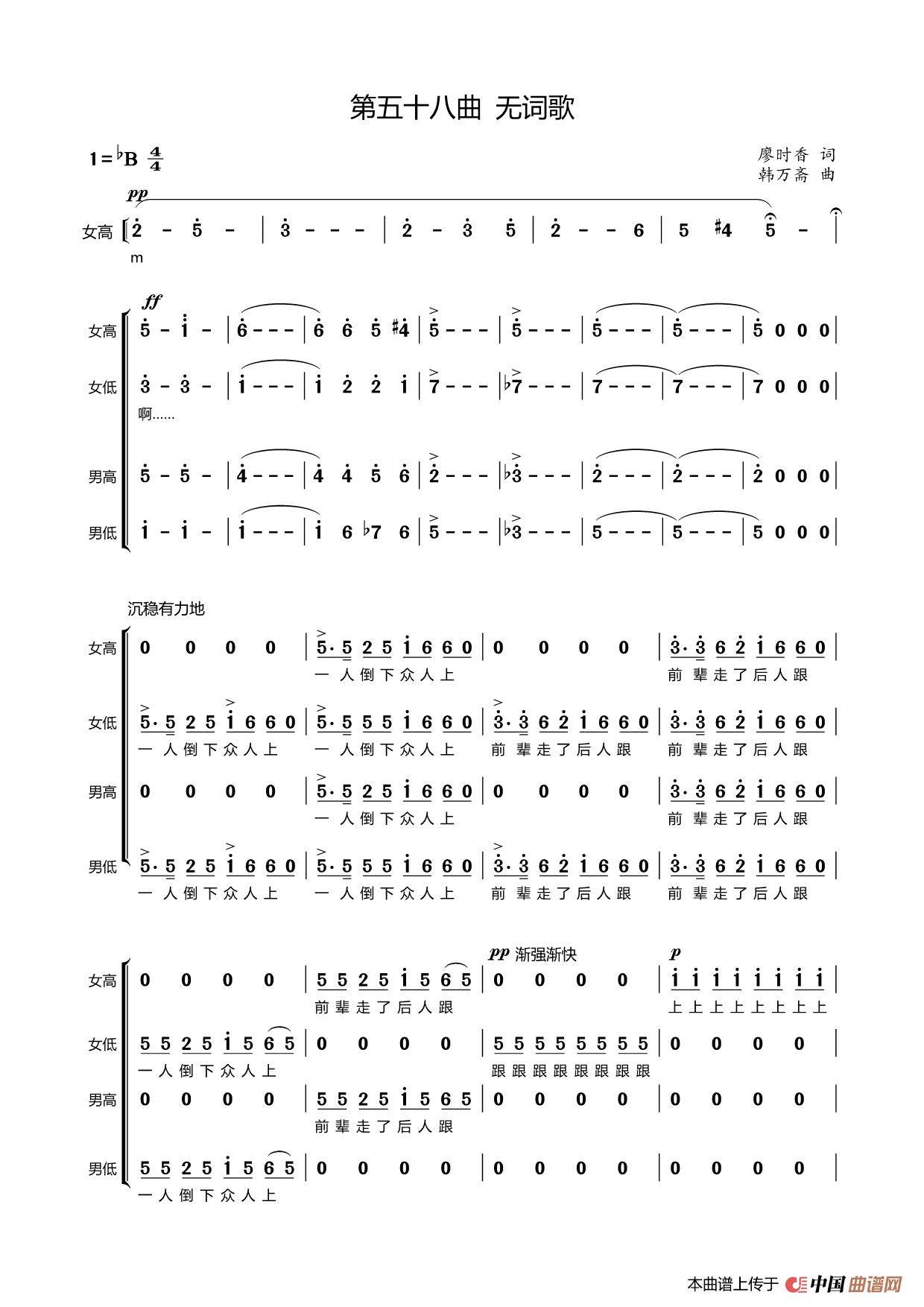 提示:在曲谱图片上单击右键,选择“图片另存为...”即可将曲谱保存到您的电脑中,打印时候可将图片插入到WORD中,调整合适大小打印即可。