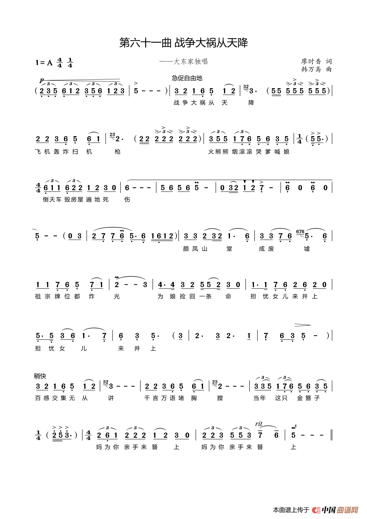 关于《第六十一曲战争大祸从天降》曲谱的评论