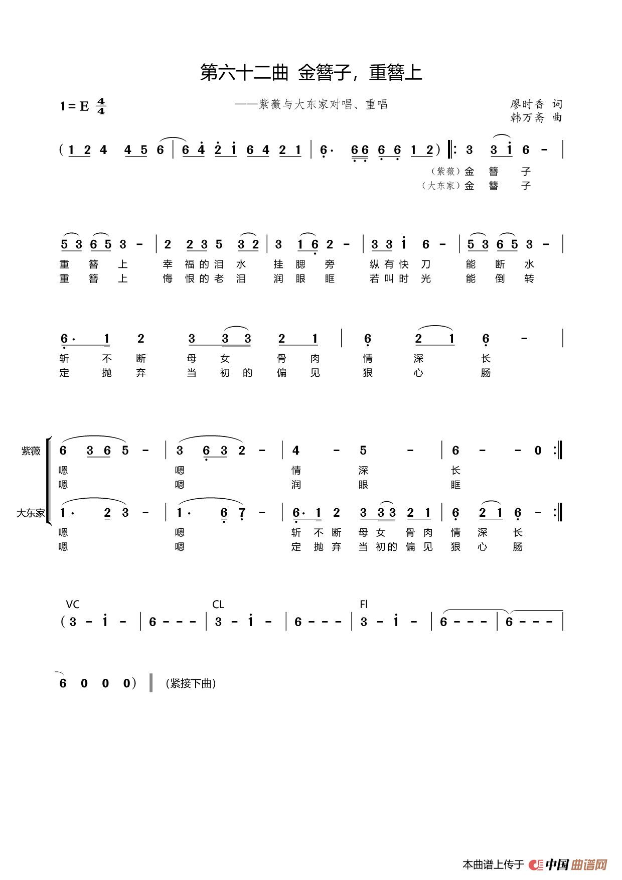 关于《第六十二曲金簪子重簪上》曲谱的评论