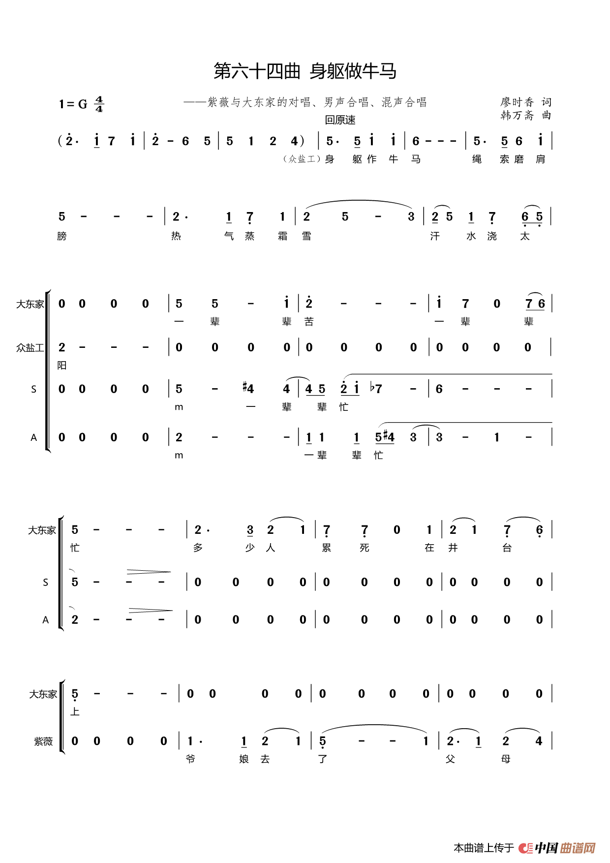 关于《第六十四曲身躯做牛马》曲谱的评论