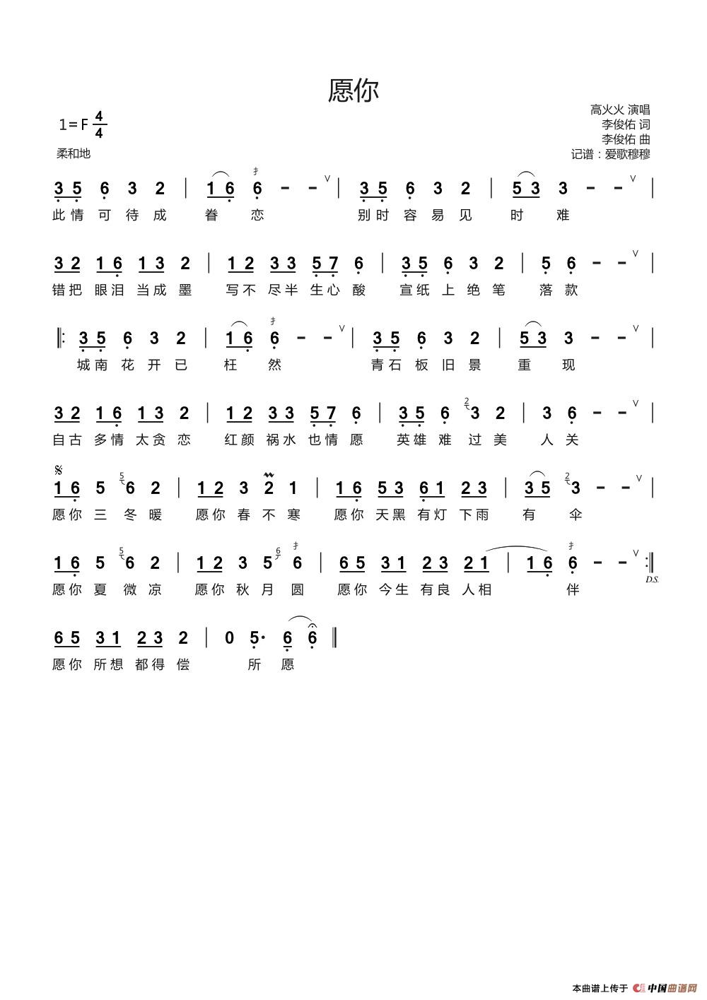 关于《愿你》曲谱的评论