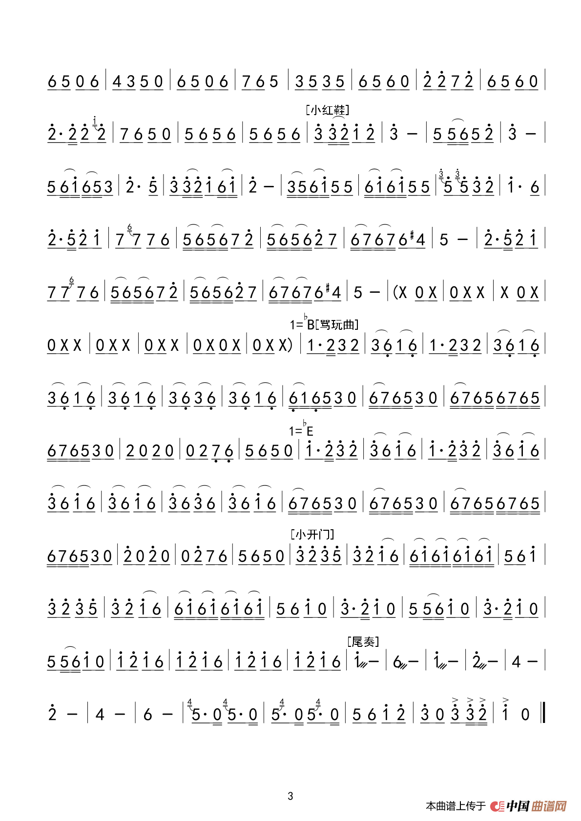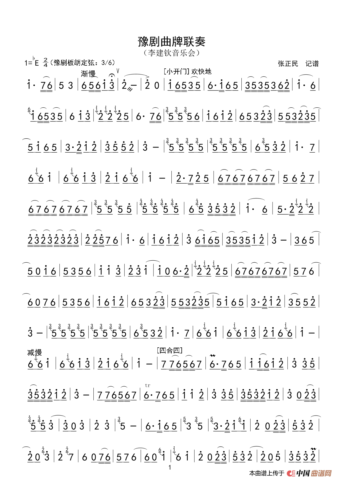 该曲谱是根据河南省豫剧三团,李建钦豫剧板胡独奏音乐会中的节目记写。