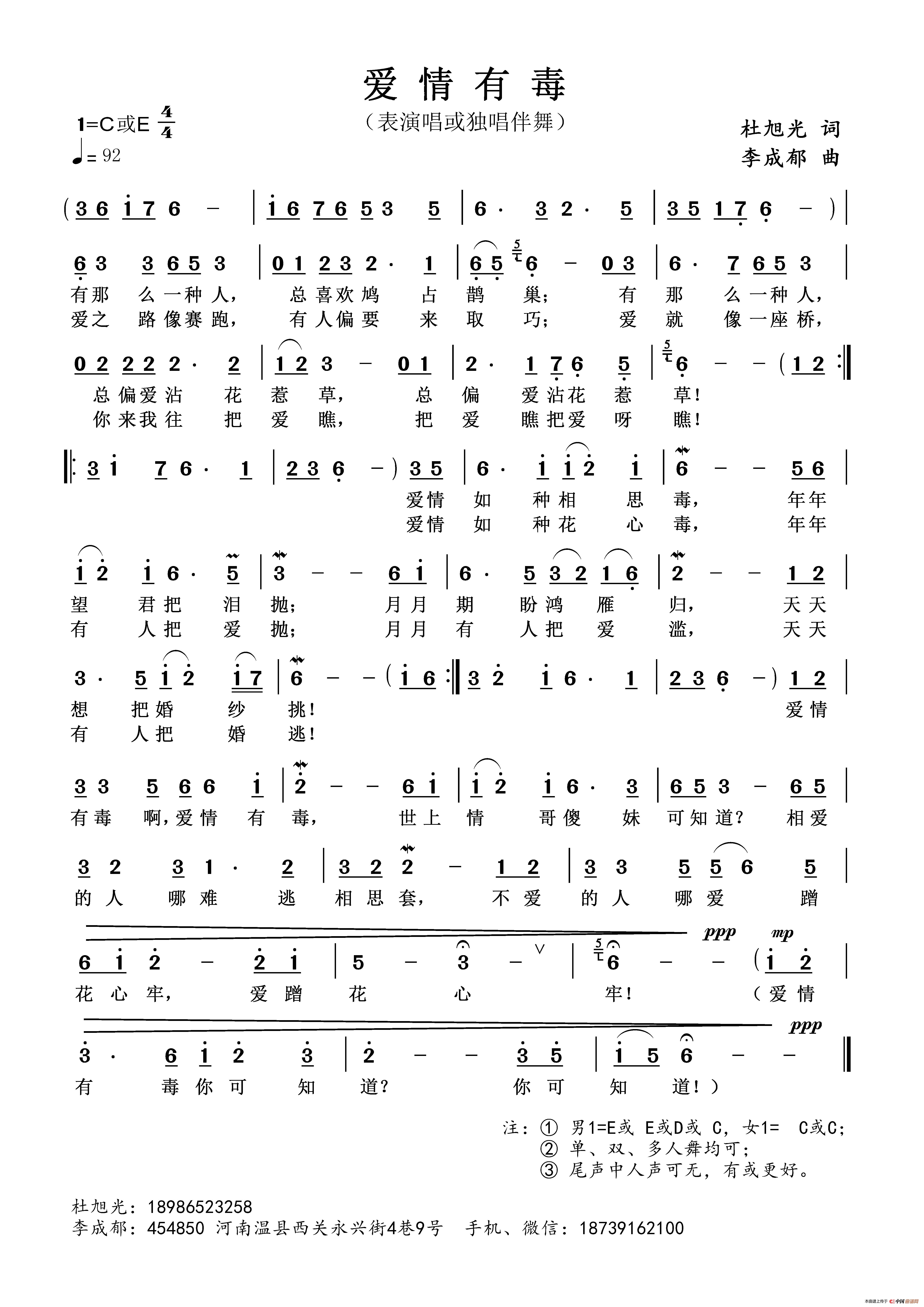 关于《爱情有毒》曲谱的评论