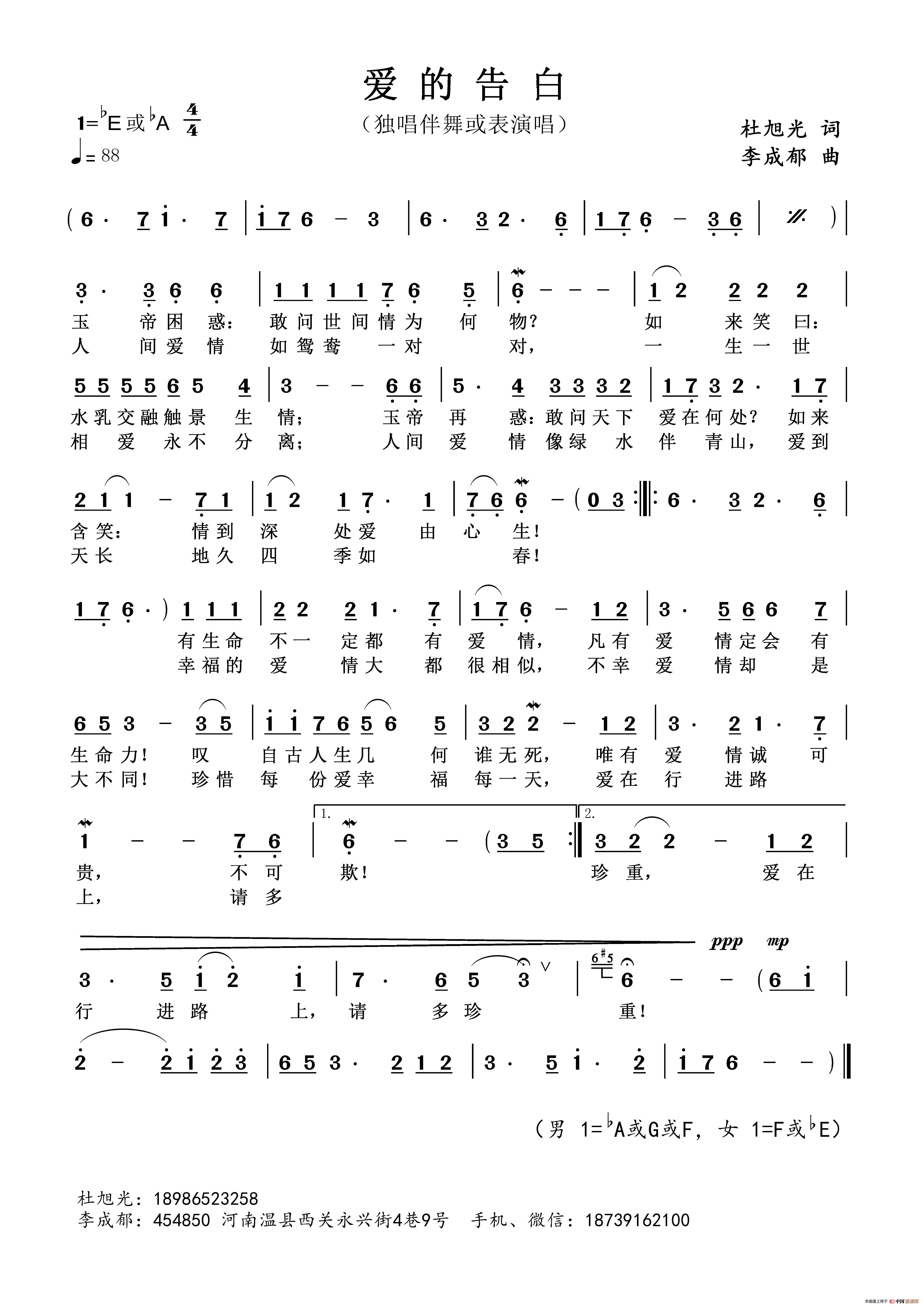 关于《爱的告白》曲谱的评论