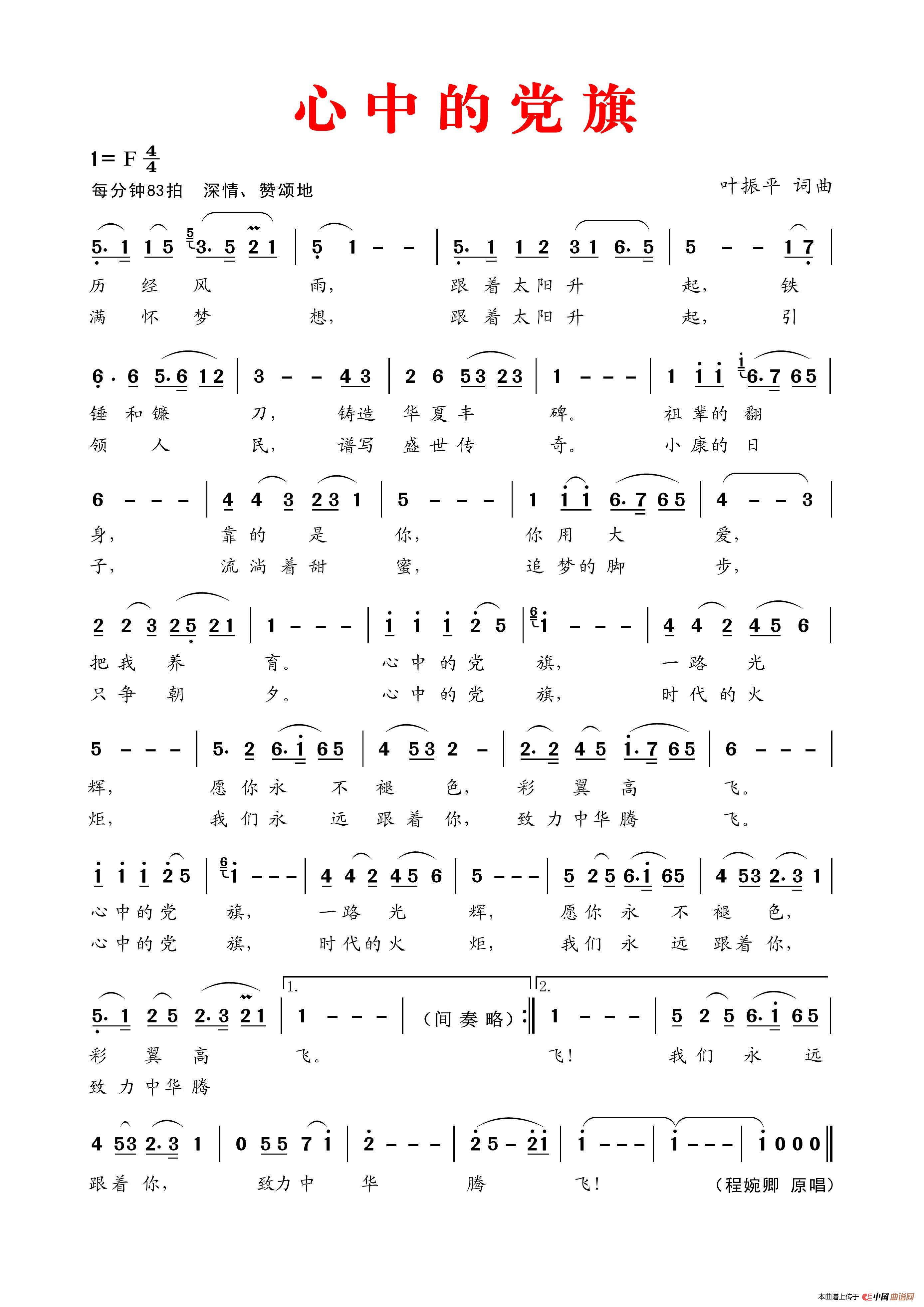 关于《心 中 的 党 旗》曲谱的评论