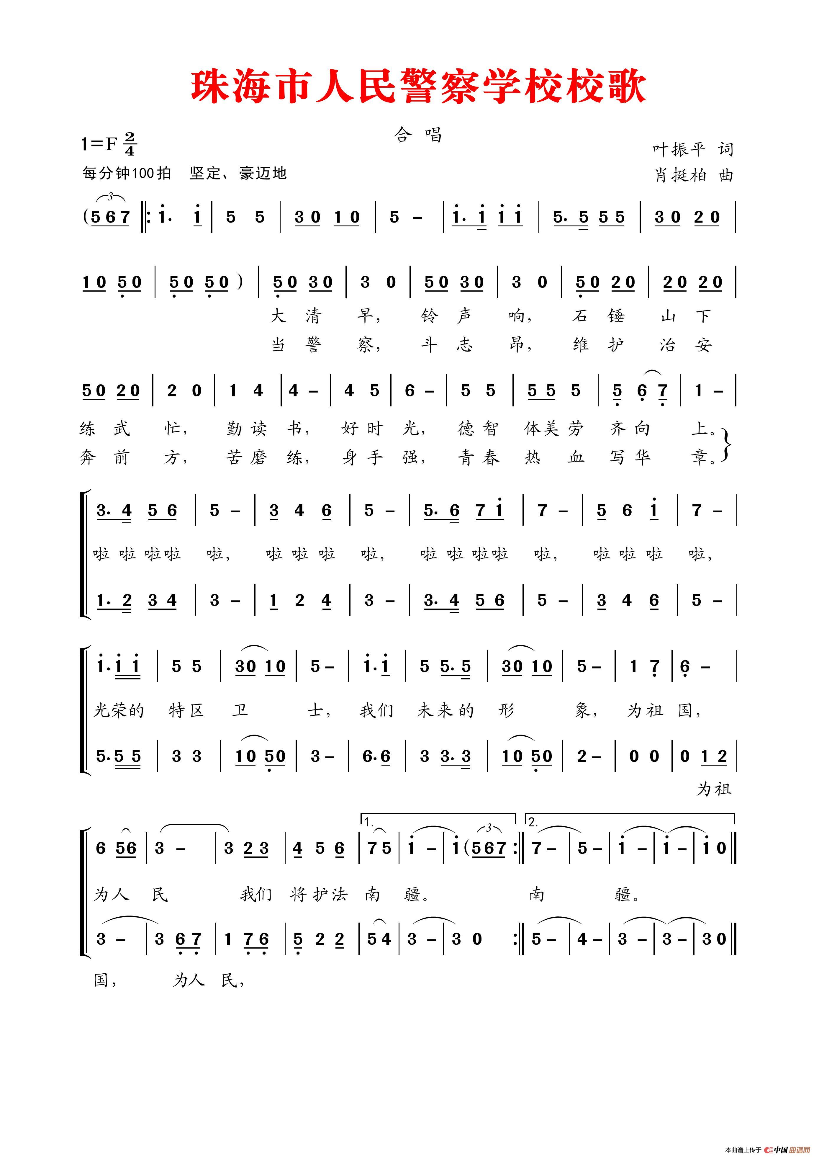 关于《珠海市人民警察学校校歌》曲谱的评论