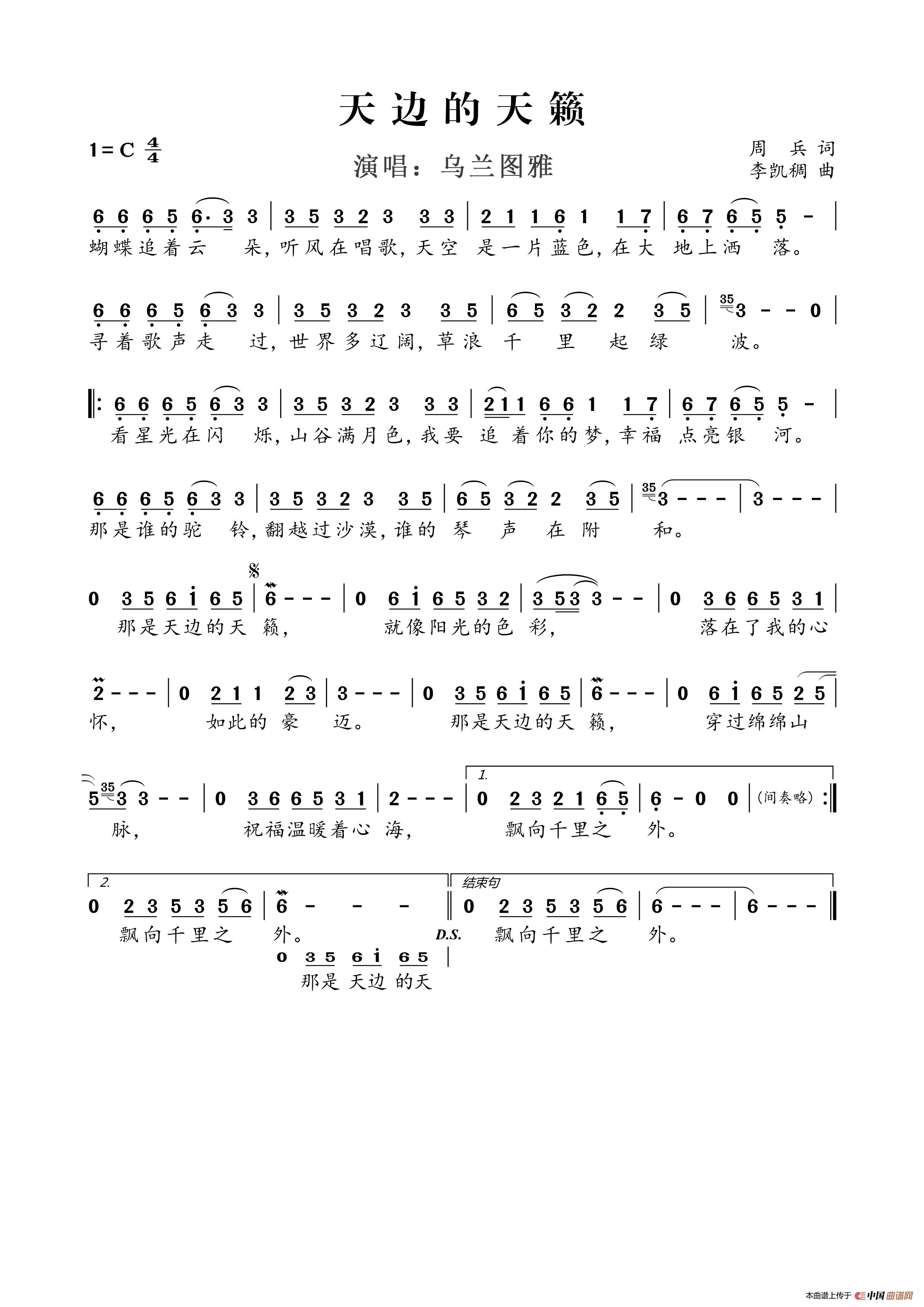 关于《天边的天籁》曲谱的评论