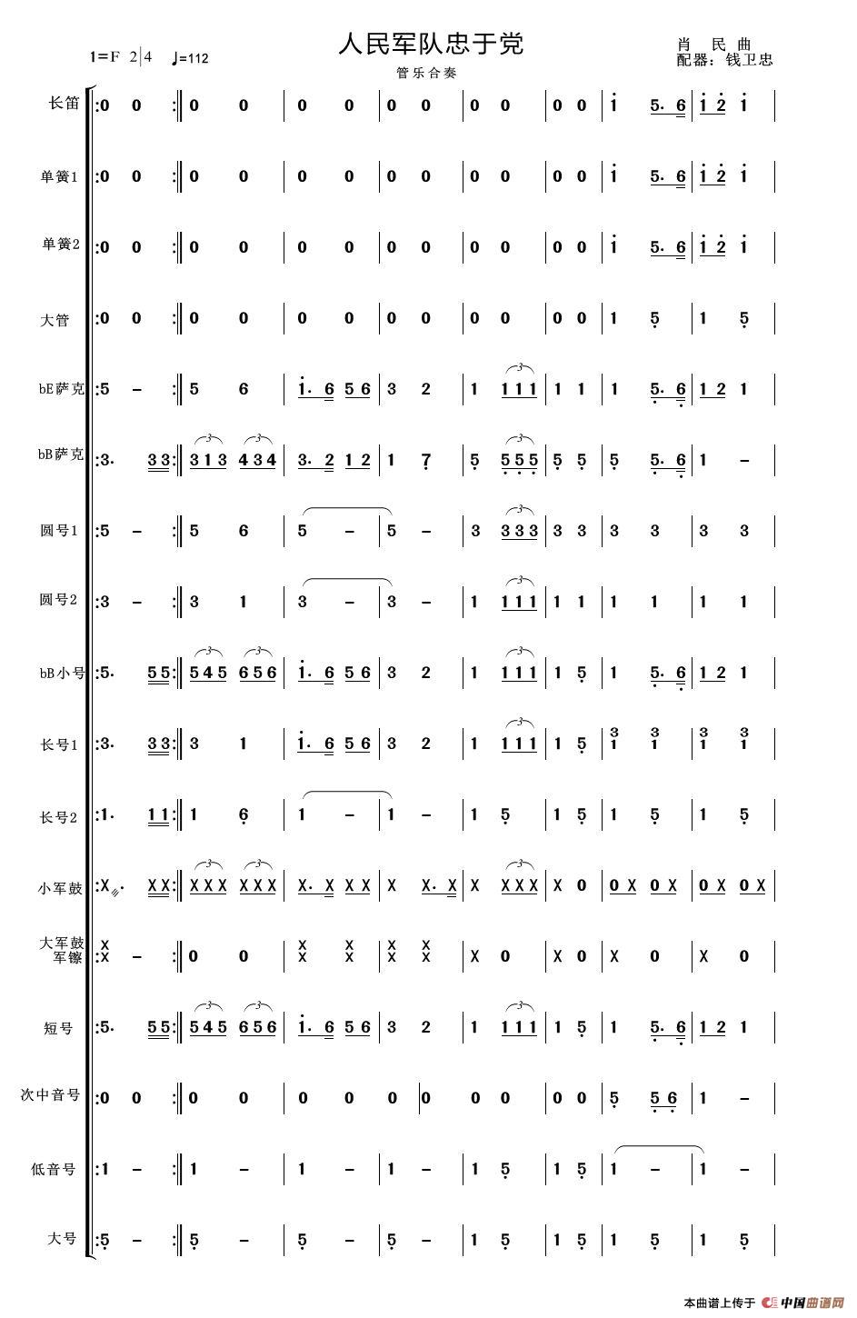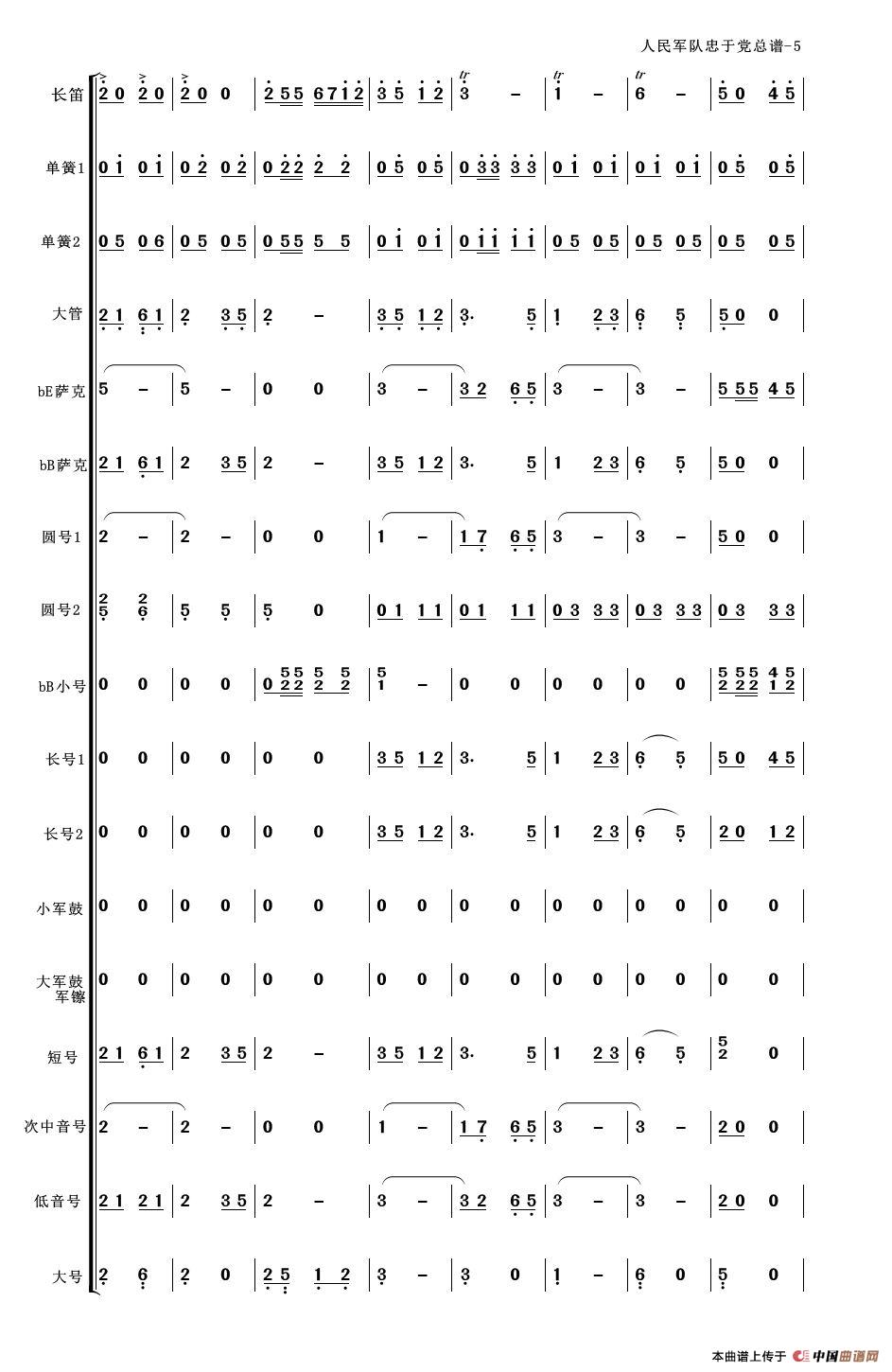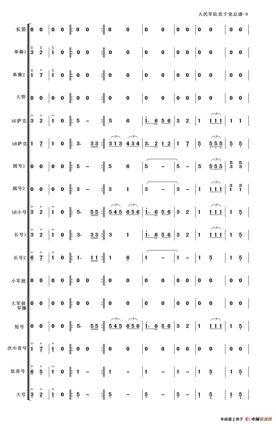 人民军队忠于党(管乐合奏总谱简谱版)(适合业余小型管乐队)