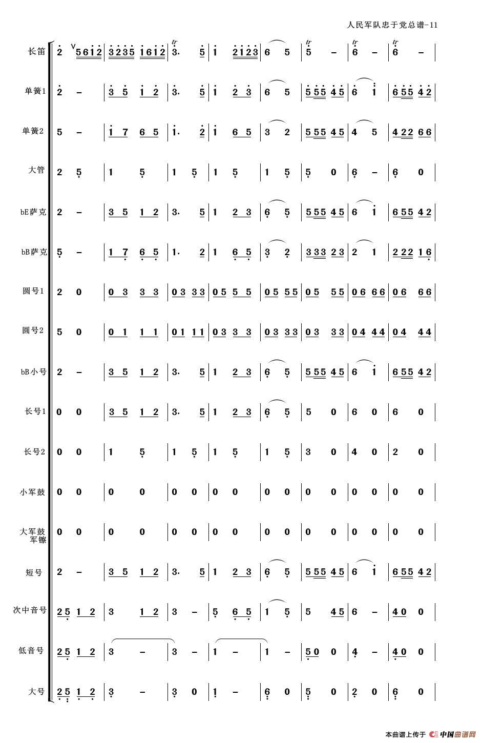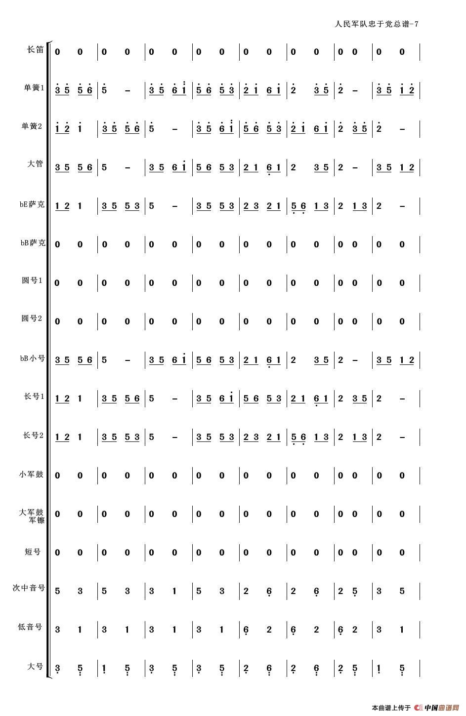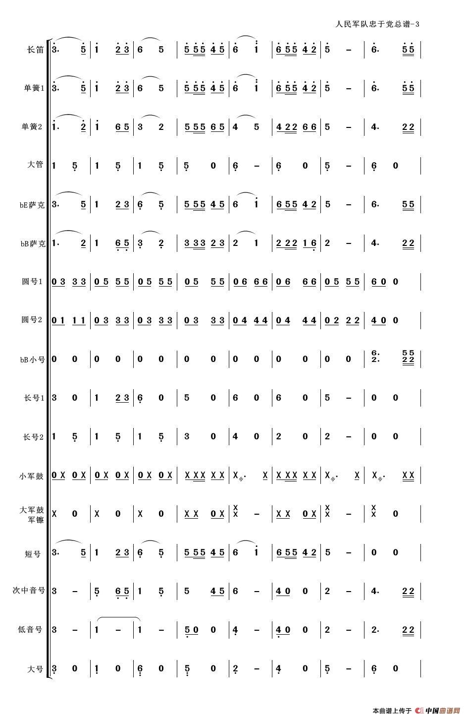 人民军队忠于党(管乐合奏总谱简谱版)(适合业余小型管乐队)