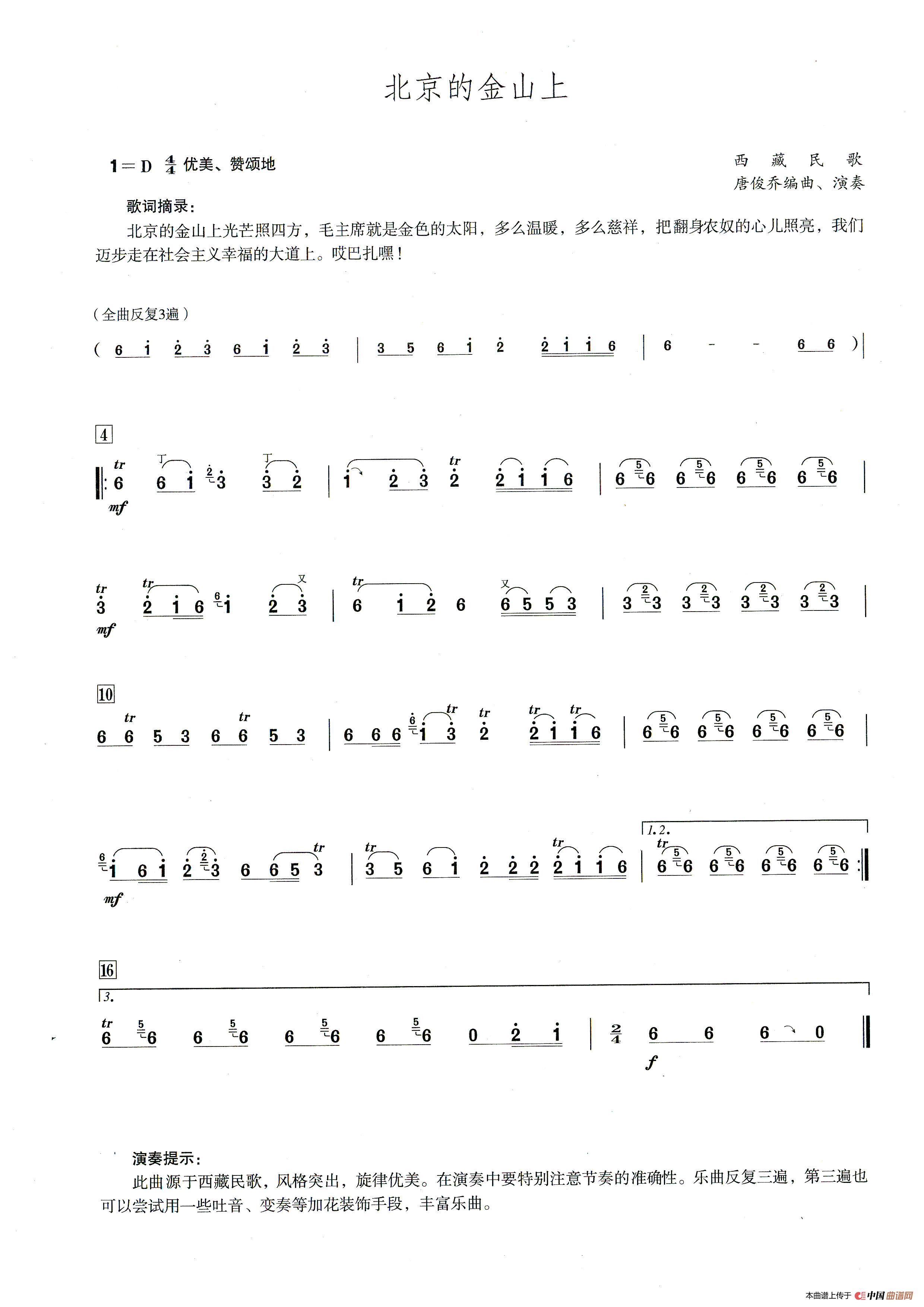 北京的金山上(笛子演奏提示版)