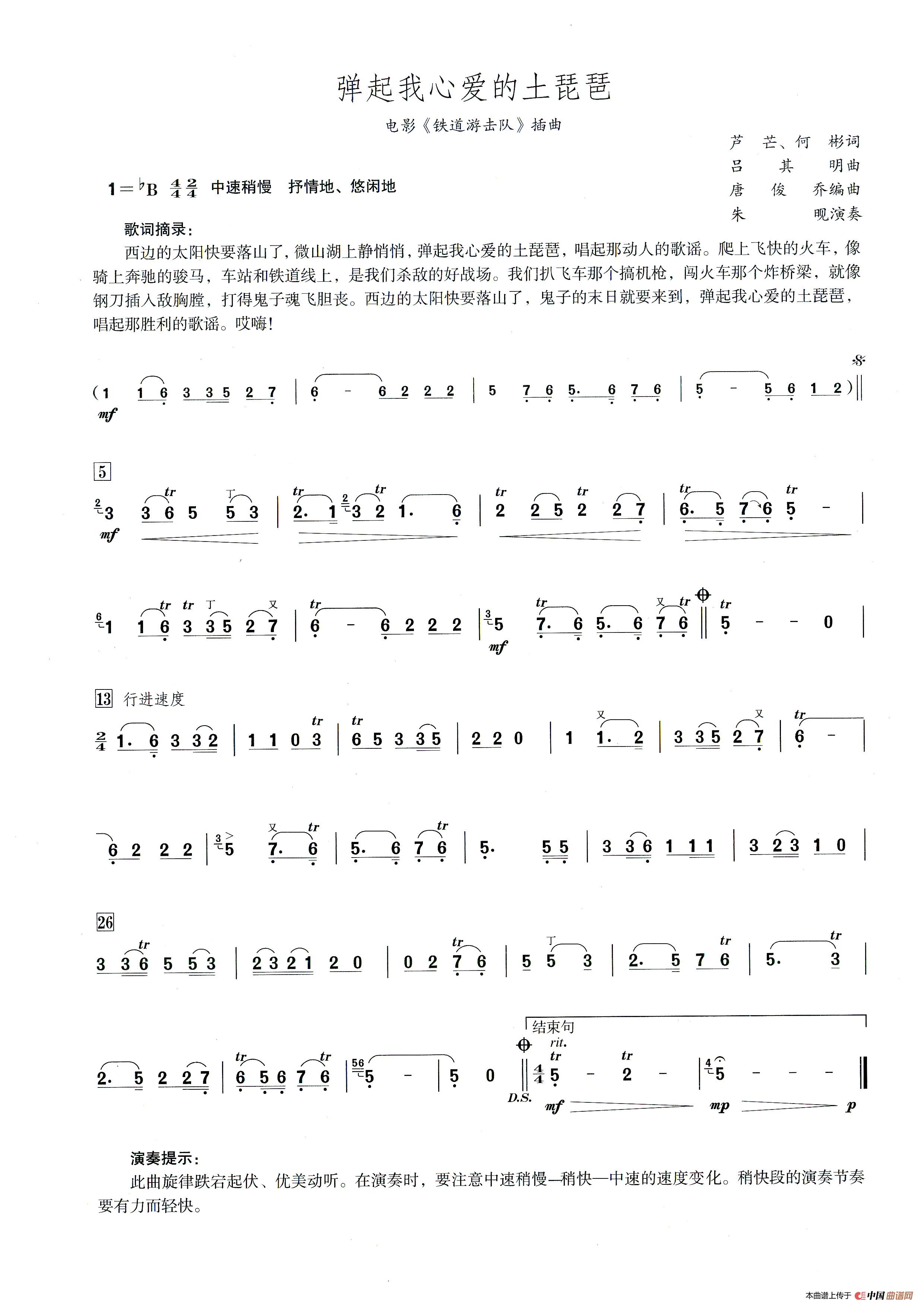 关于《弹起我心爱的土琵琶》曲谱的评论