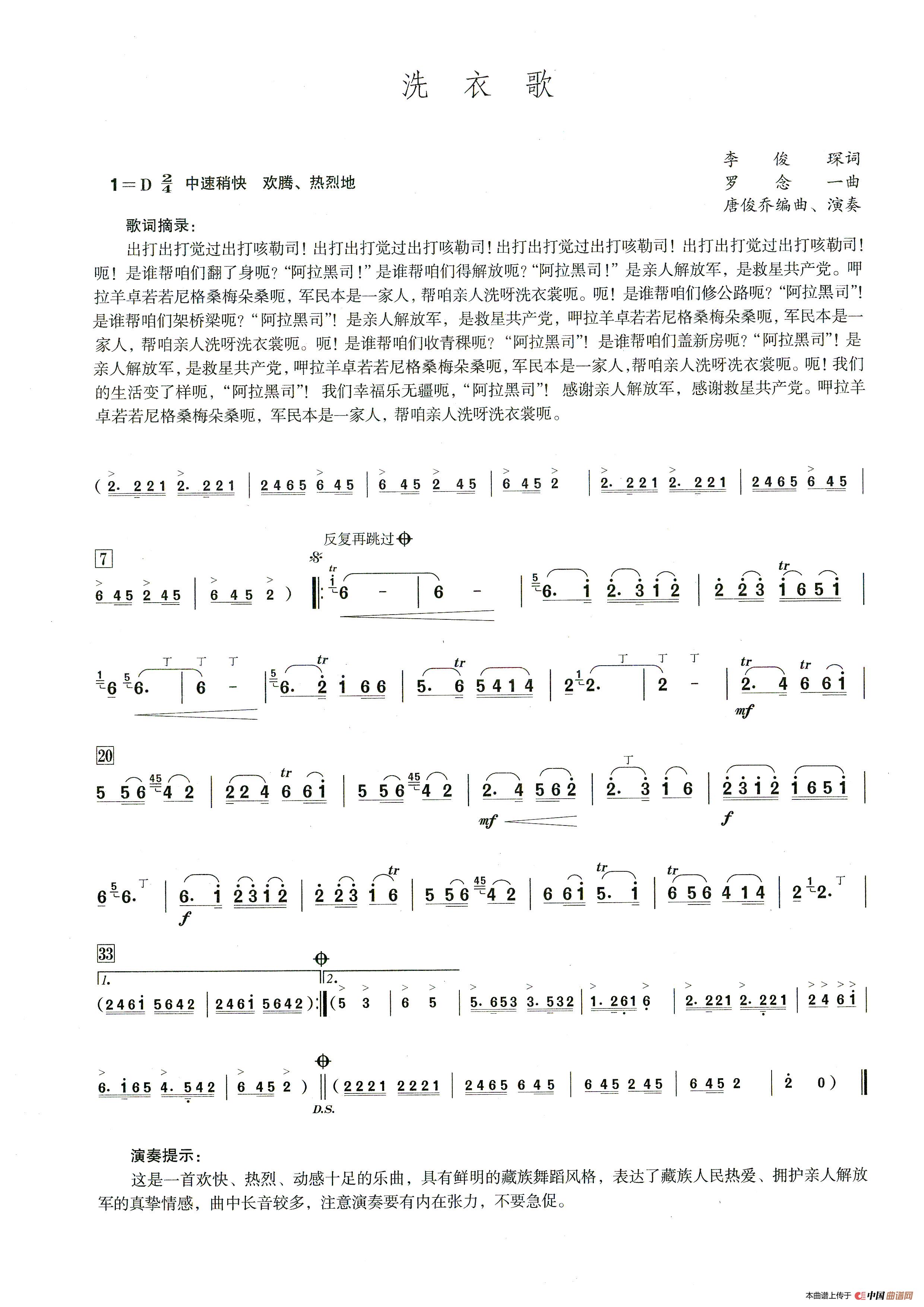 笛子演奏洗衣歌-伴奏+示范+曲谱: https://545c.com/dir/13995422-38660012-63299d