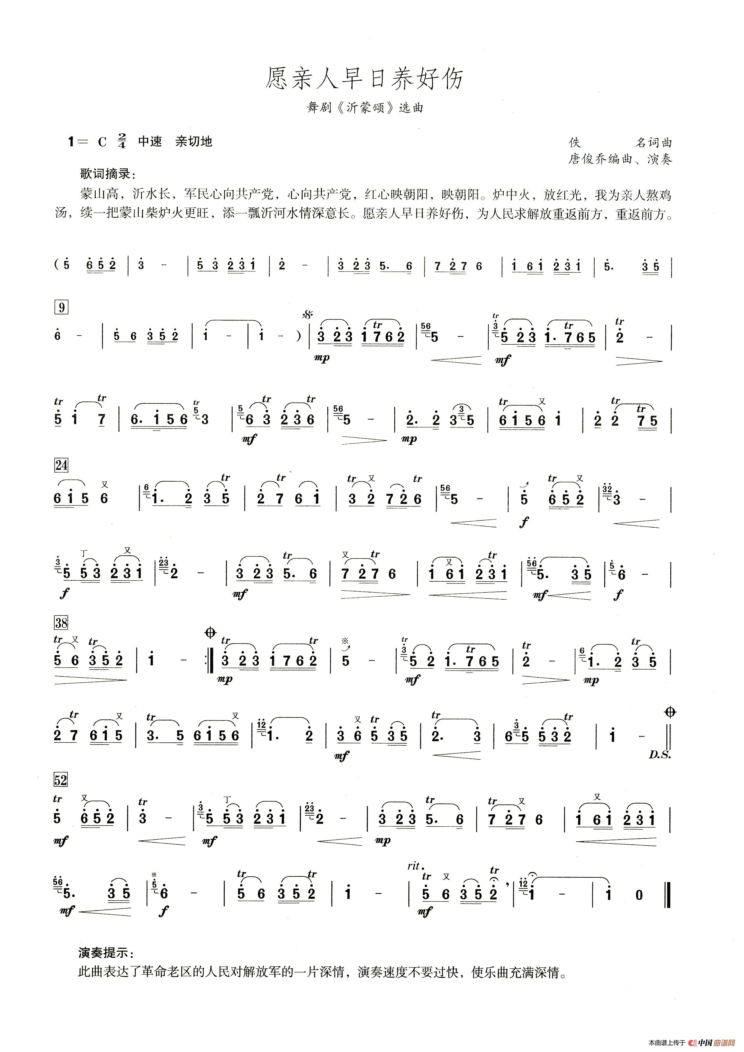 笛子演奏愿亲人早日养好伤-伴奏+示范+曲谱: https://545c.com/dir/13995422-38660054-6c9bb8