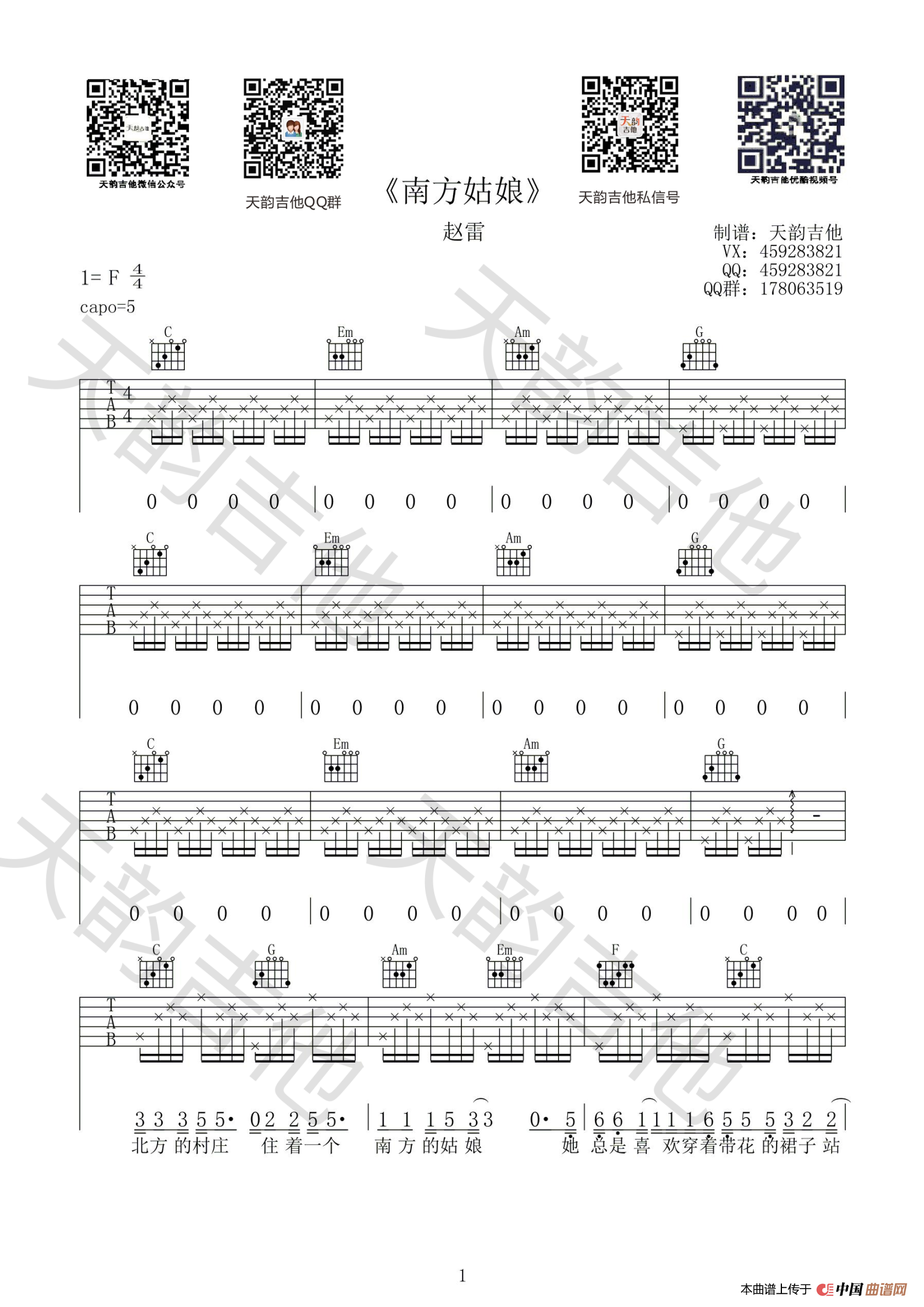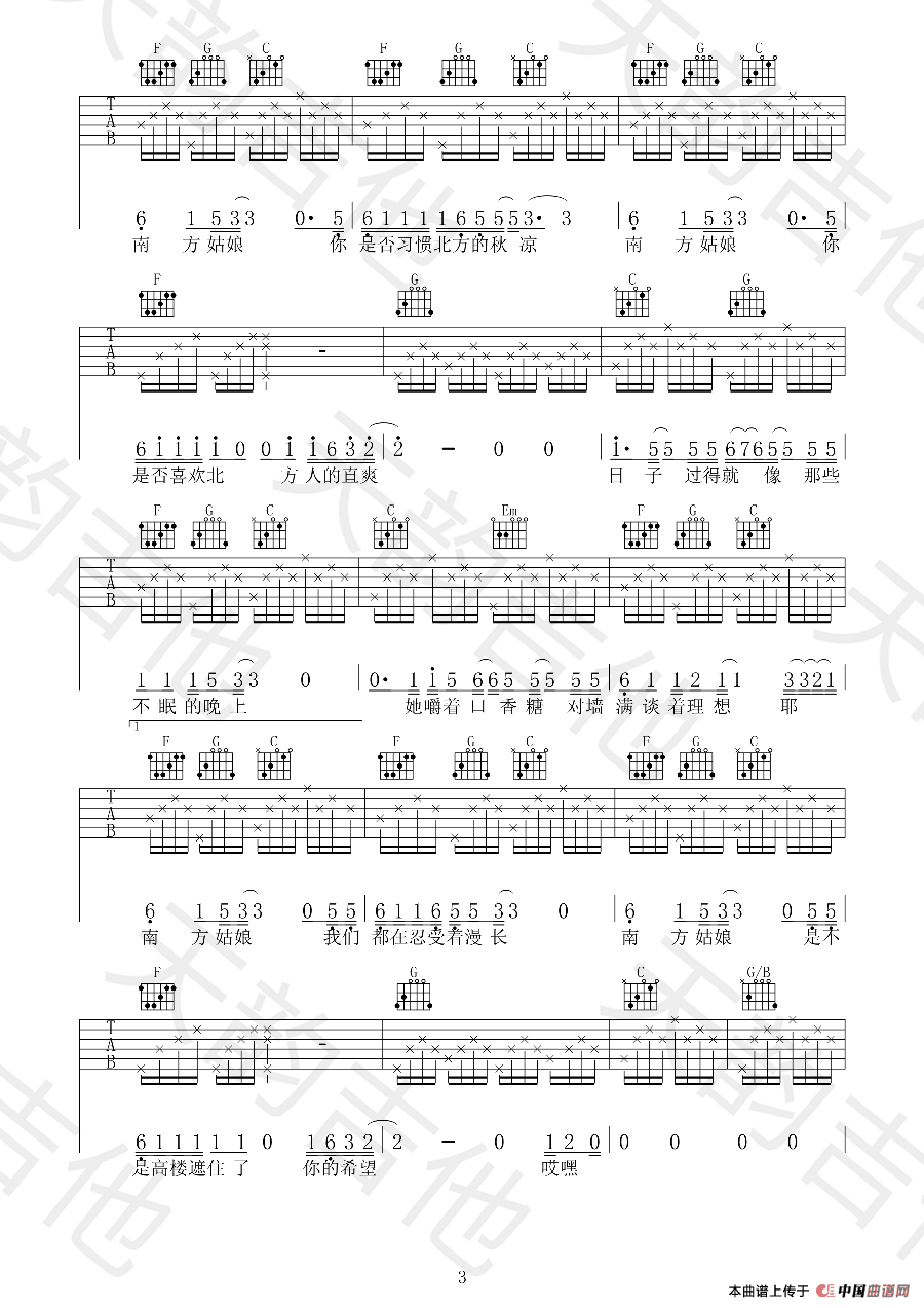 关于《南方姑娘》曲谱的评论