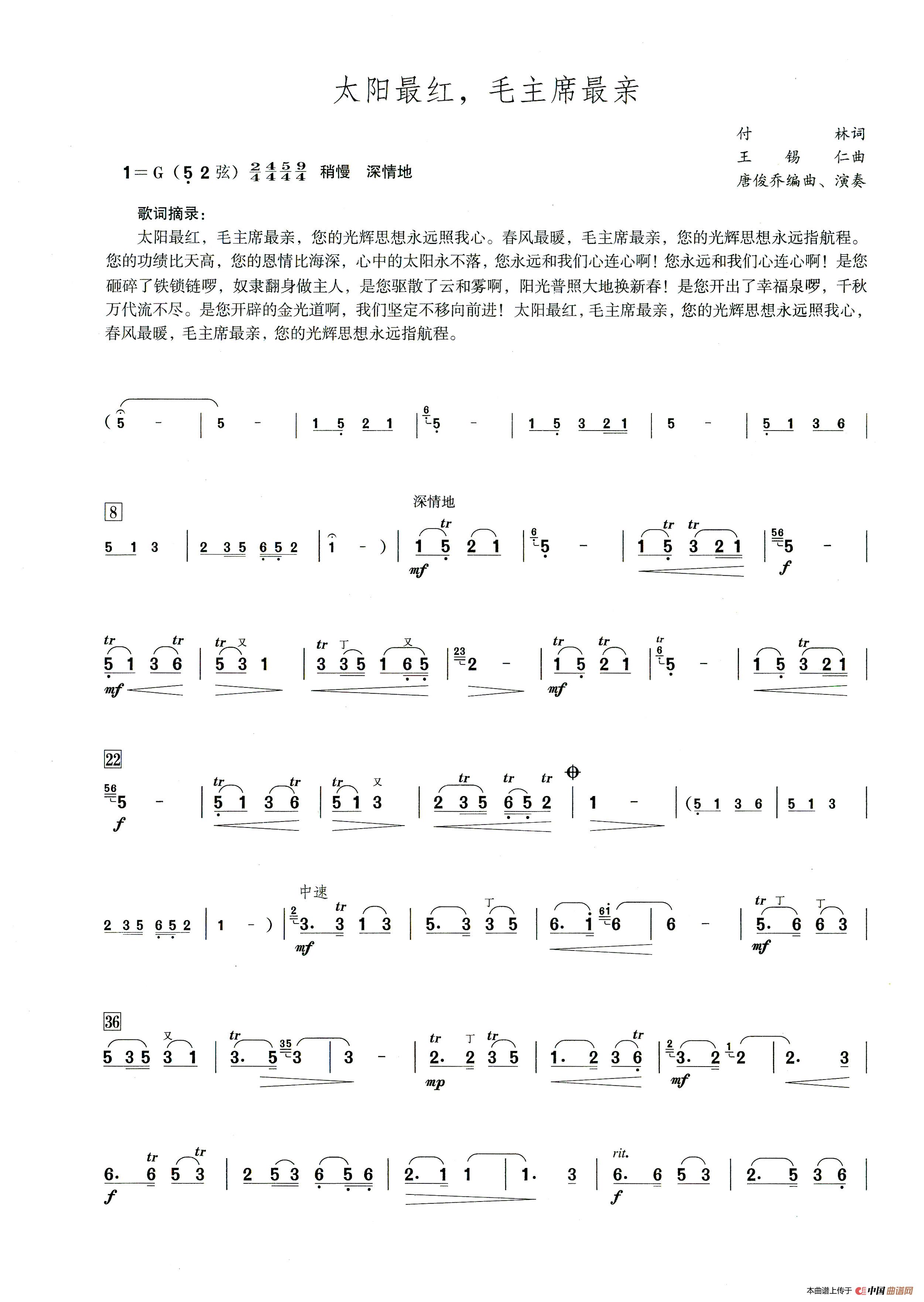 关于《太阳最红,毛主席最亲》曲谱的评论