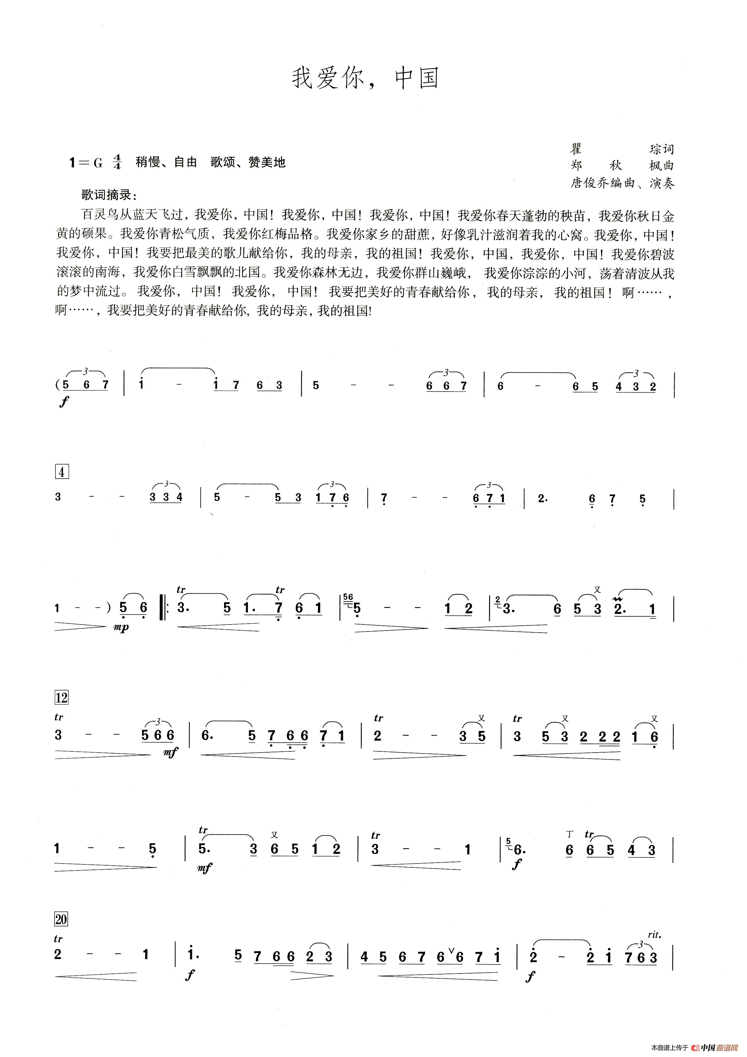 关于《我爱你,中国》曲谱的评论