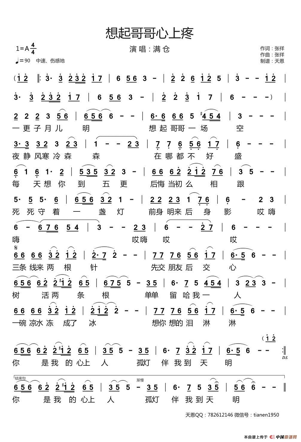 关于《想起哥哥心上疼》曲谱的评论