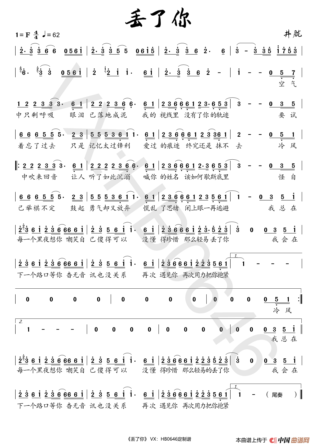 关于《丢了你》曲谱的评论