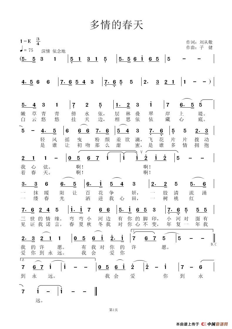 提示:在曲谱图片上单击右键,选择"图片另存为..."即可将曲谱保存到您的电脑中,打印时候可将图片插入到WORD中,调整合适大小打印即可。