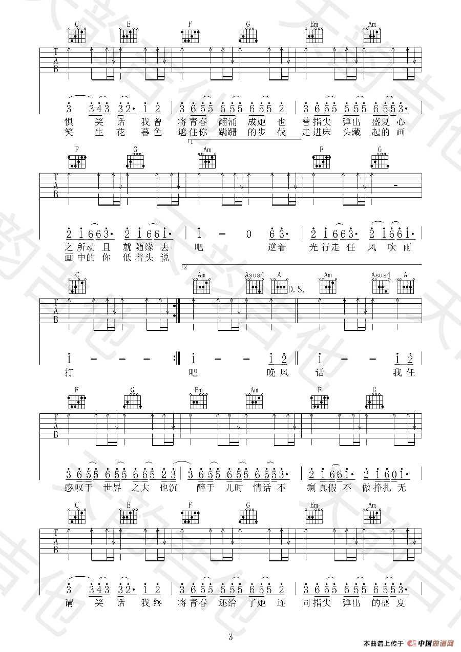 提示:在曲谱图片上单击右键,选择“图片另存为...”即可将曲谱保存到您的电脑中,打印时候可将图片插入到WORD中,调整合适大小打印即可。