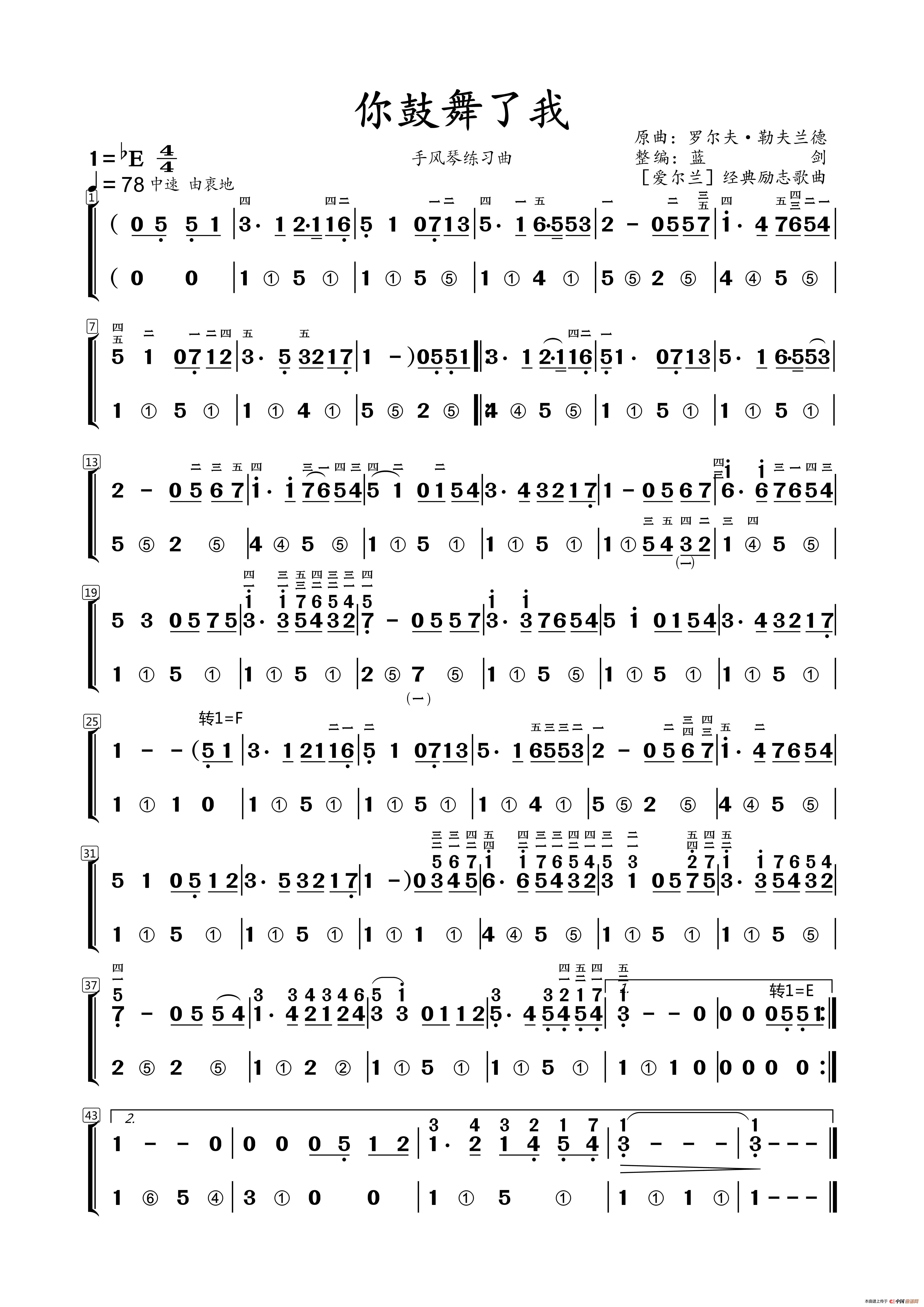 提示:在曲谱图片上单击右键,选择"图片另存为..."即可将曲谱保存到您的电脑中,打印时候可将图片插入到WORD中,调整合适大小打印即可。