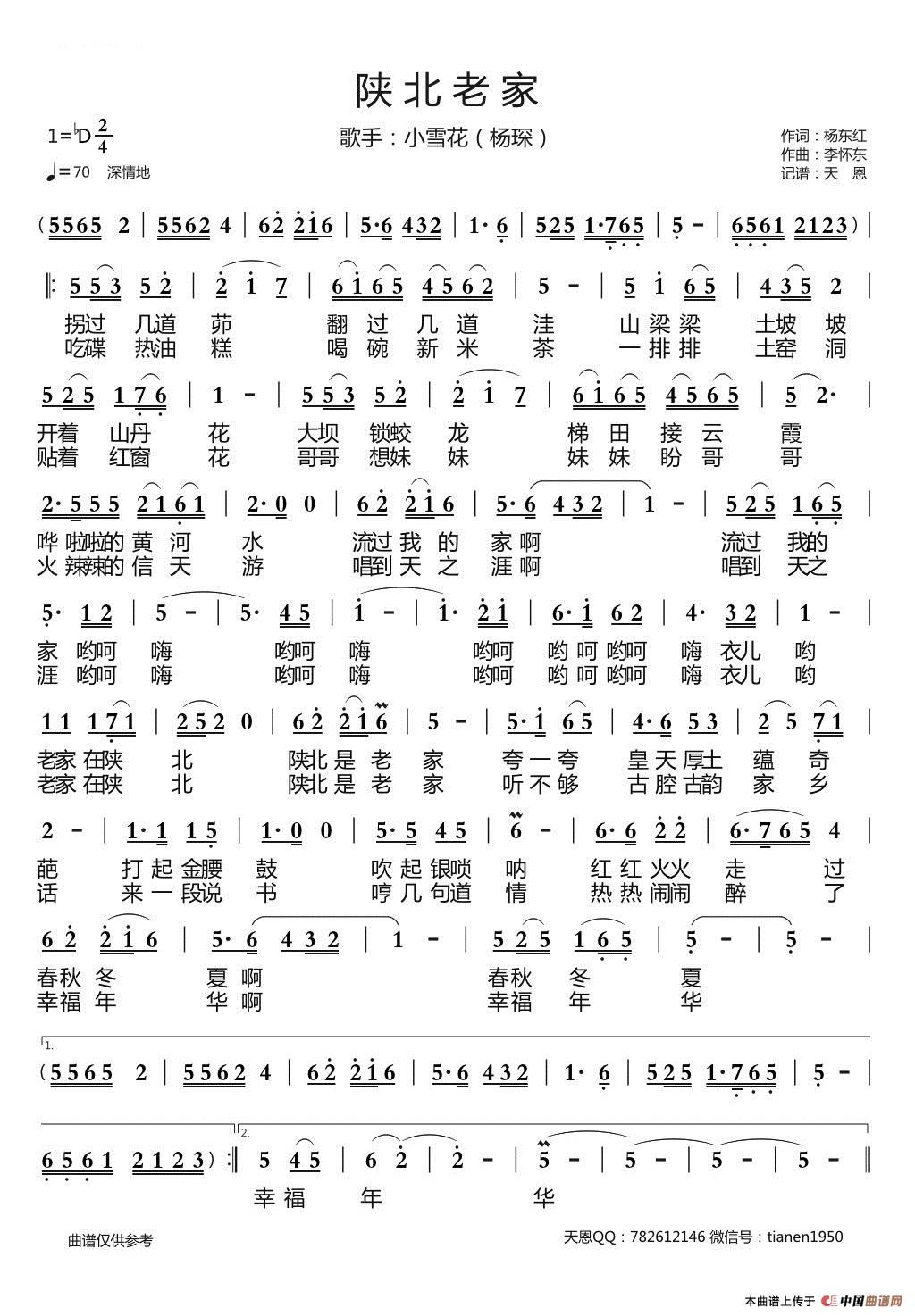 关于《陕北老家》曲谱的评论