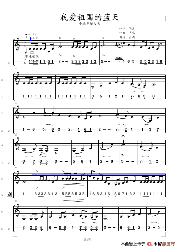 提示:在曲谱图片上单击右键,选择“图片另存为...”即可将曲谱保存到您的电脑中,打印时候可将图片插入到WORD中,调整合适大小打印即可。