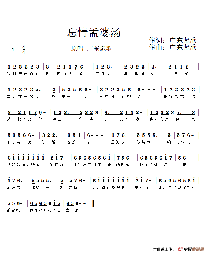 忘情孟婆汤关于《忘情孟婆汤》曲谱的评论