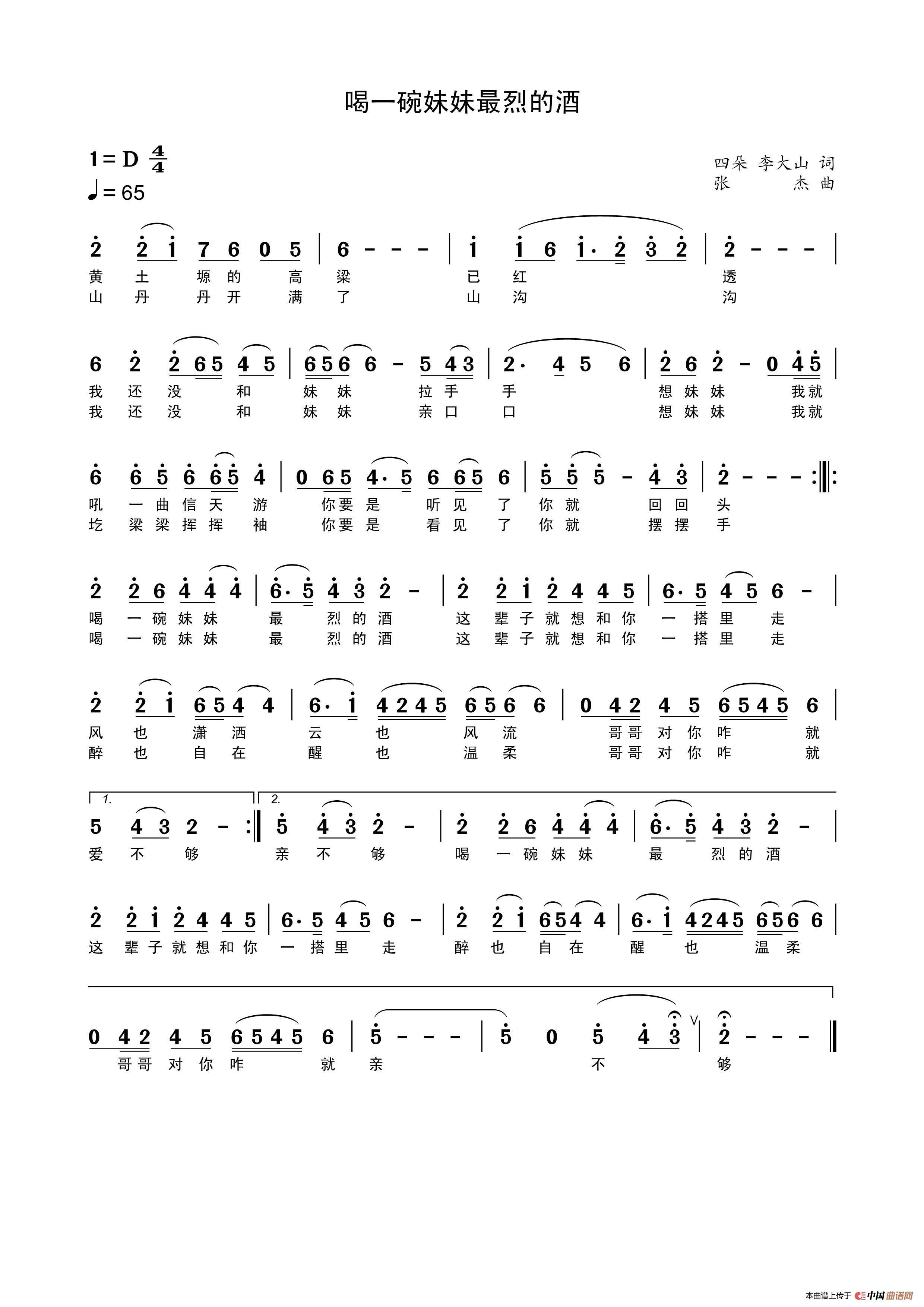 关于《喝一碗妹妹最烈的酒》曲谱的评论