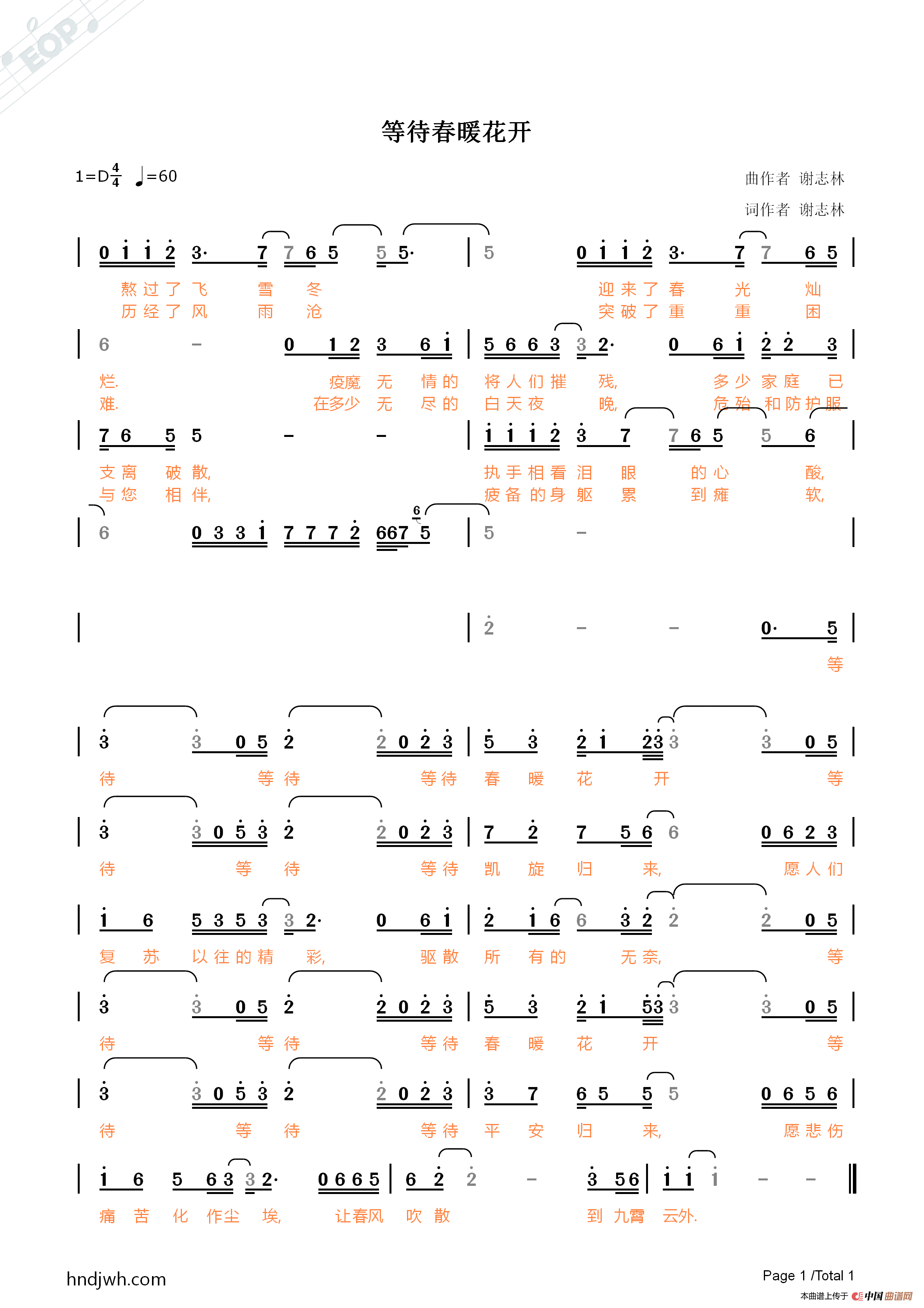 期待人们生活早日恢复昔日的多姿多彩、愿战士早日平安凯旋归家、愿饱受病魔摧残的人们早日康复,让我们执手等待春暖花开的灿烂明天。谢志林 音乐人: 谨此原创感人mv敬献,向舍己成人抗疫在前线的白衣战士致敬,向所有奋斗在抗疫现场的爱心工作人员致敬。 #爱的力量# #愿春暖花开时山河无恙人间皆安# #全国人民齐心协力众志成城抵抗疫情#