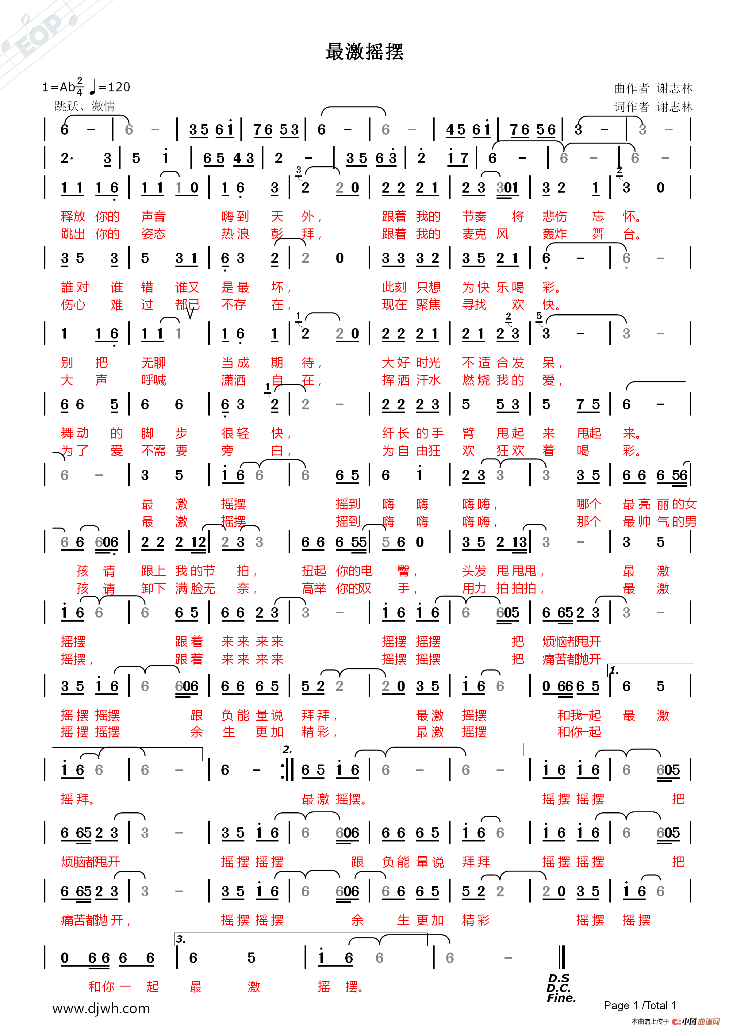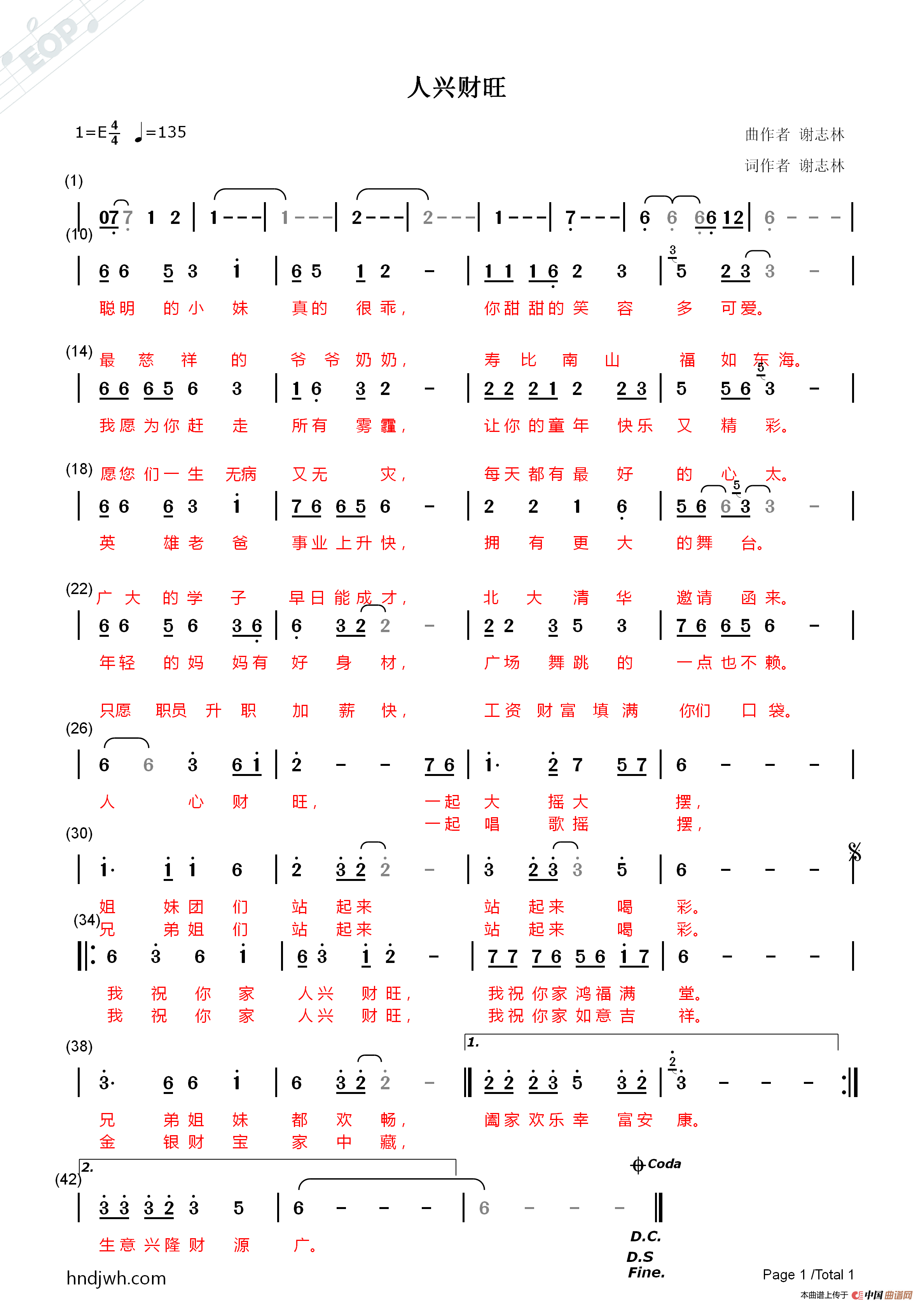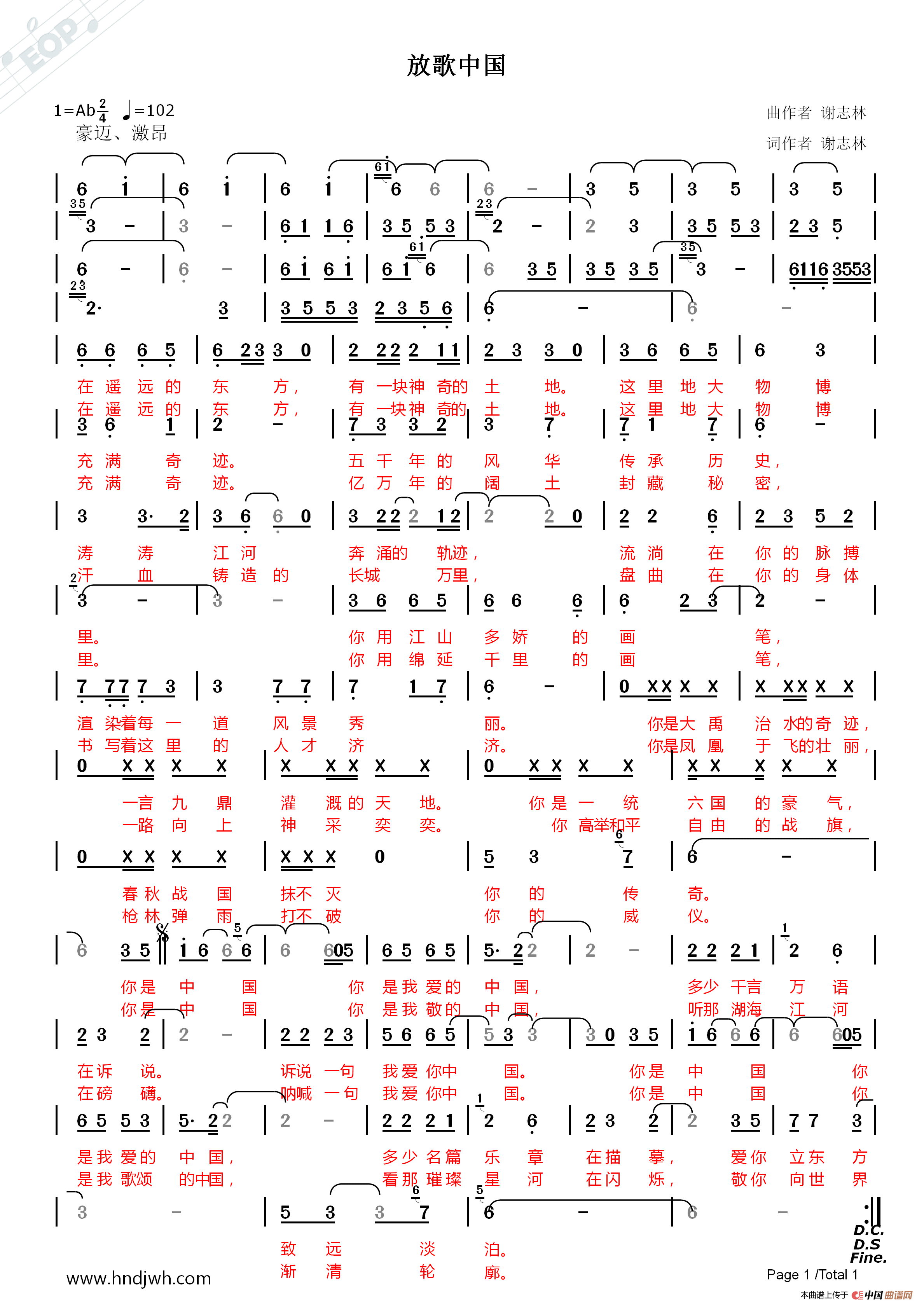 提示:在曲谱图片上单击右键,选择“图片另存为...”即可将曲谱保存到您的电脑中,打印时候可将图片插入到WORD中,调整合适大小打印即可。
