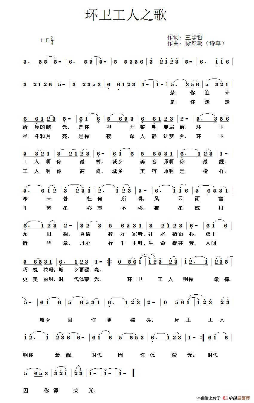 关于《环卫工人之歌》曲谱的评论