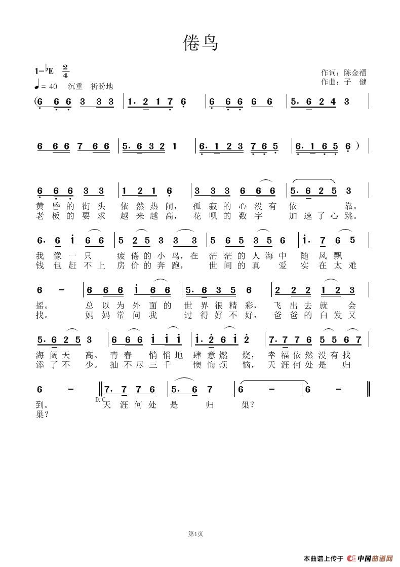 《倦鸟》文本歌词