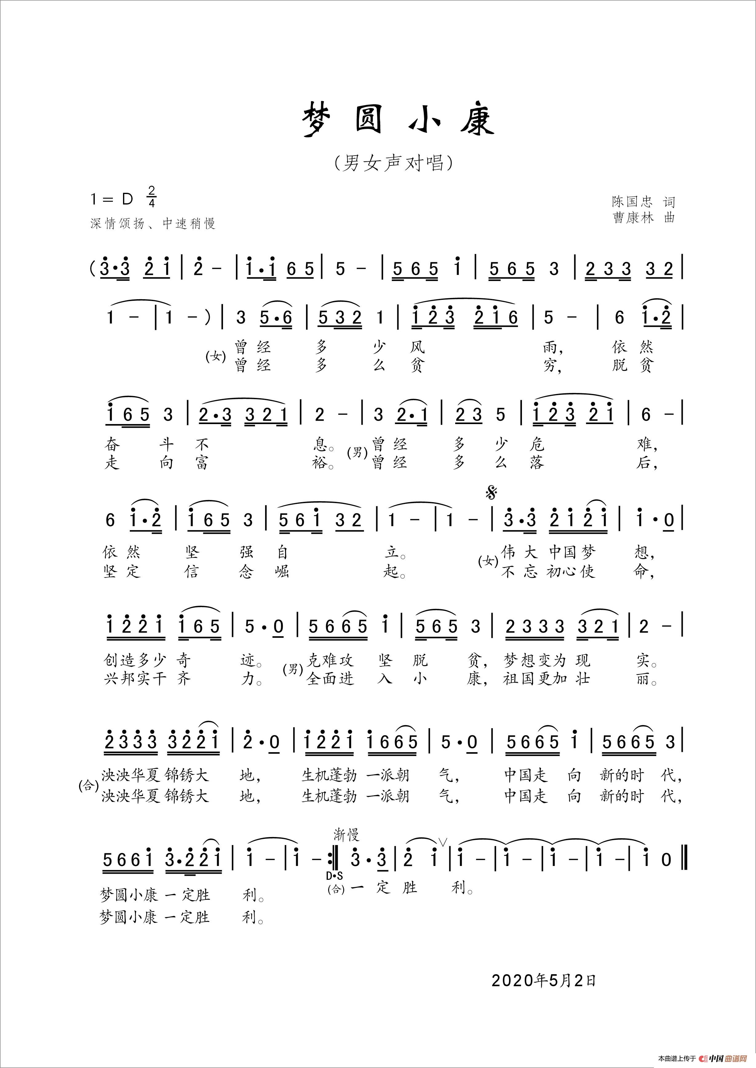 关于《梦圆小康》曲谱的评论