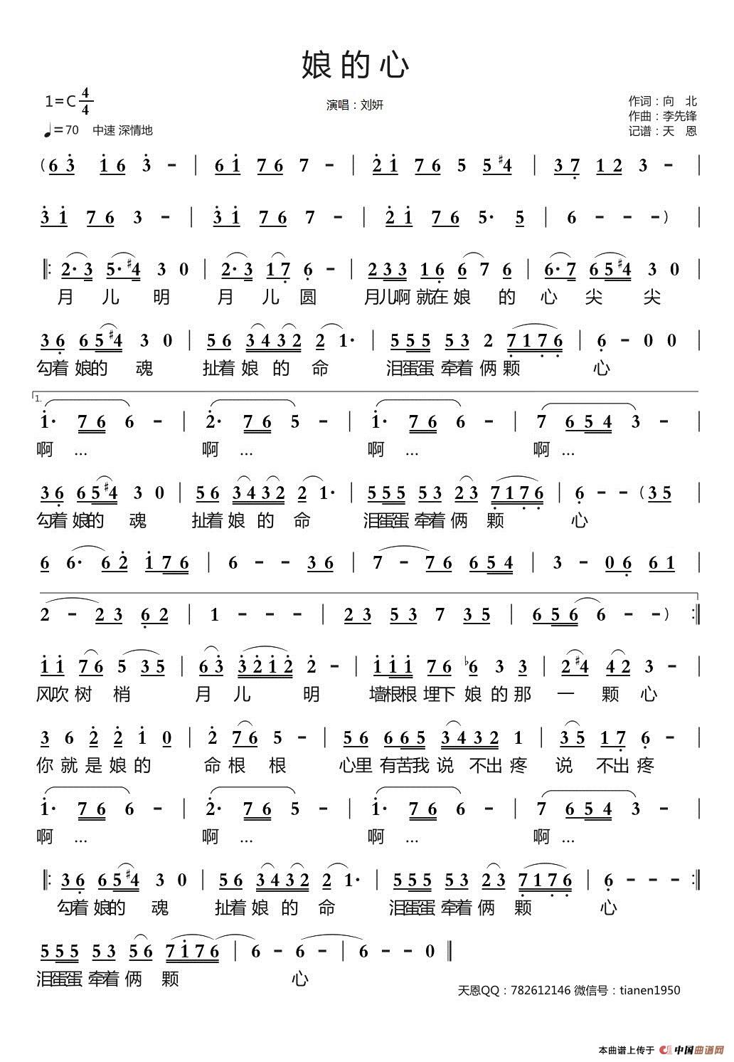 关于《娘的心》曲谱的评论
