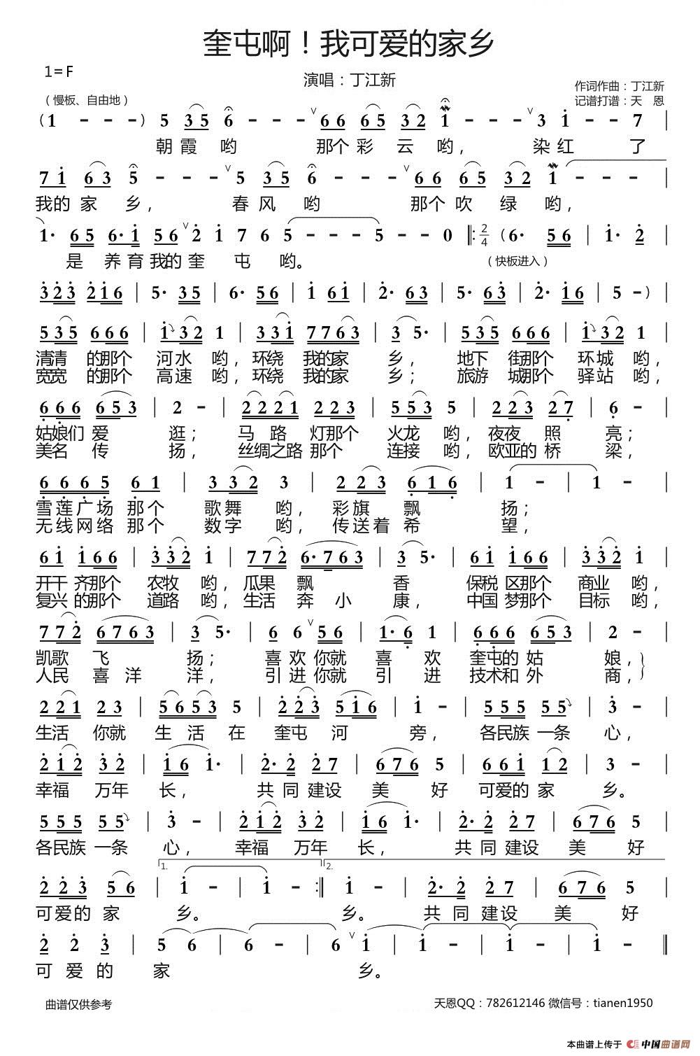 关于《奎屯啊我可爱的家乡》曲谱的评论