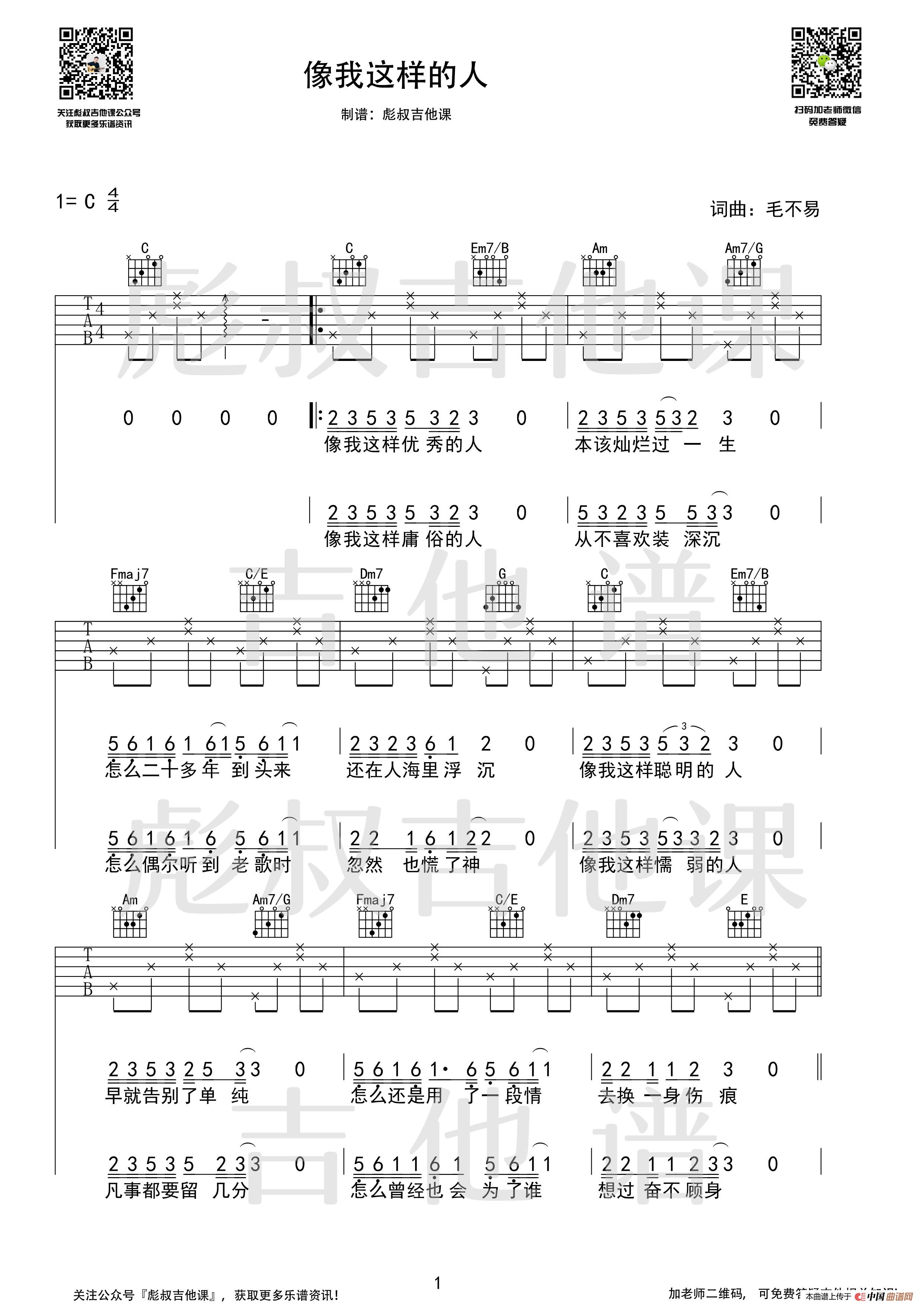 关于《毛不易—《像我这样的人》C调弹唱六线谱》曲谱的评论