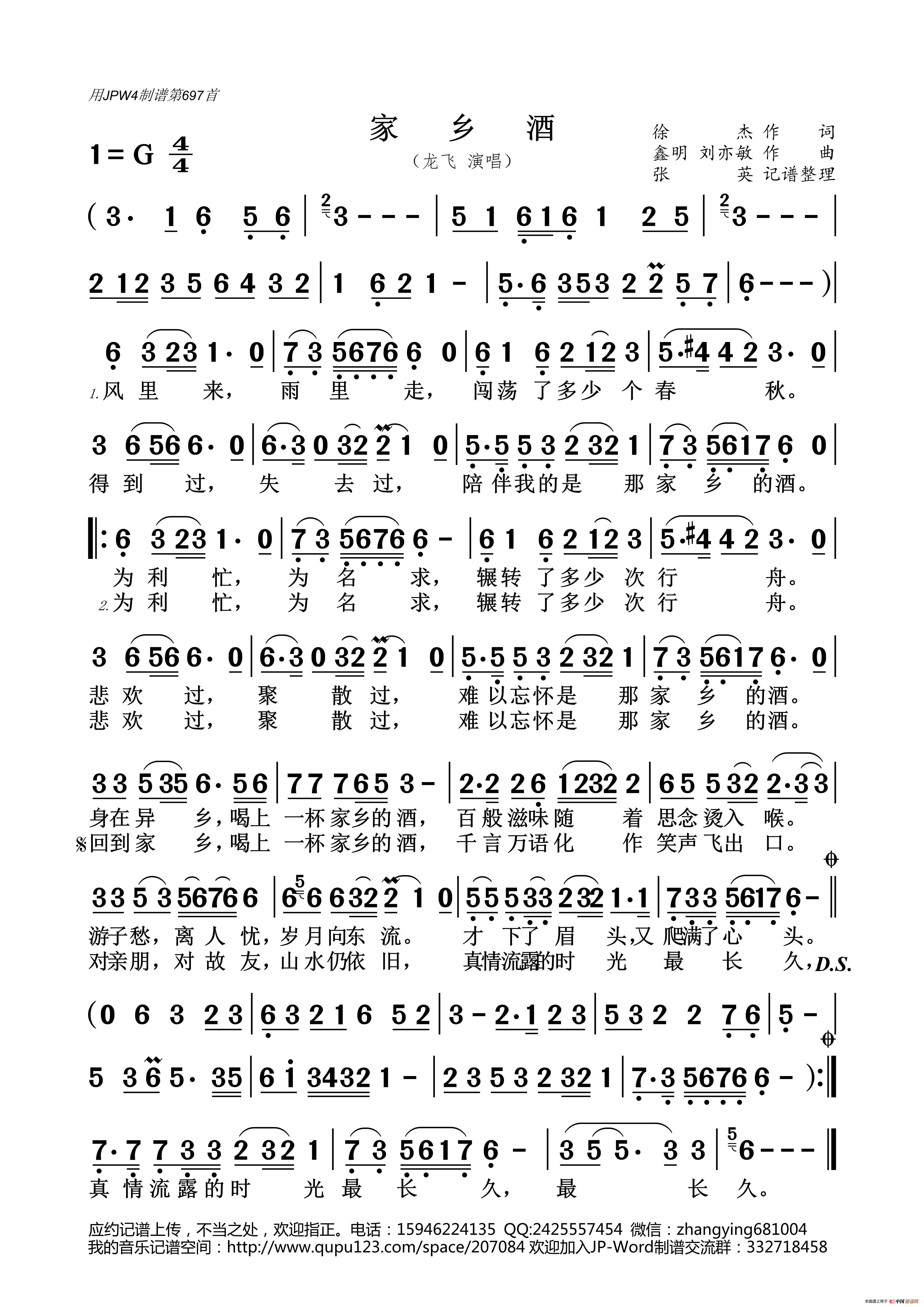 关于《家乡酒》曲谱的评论