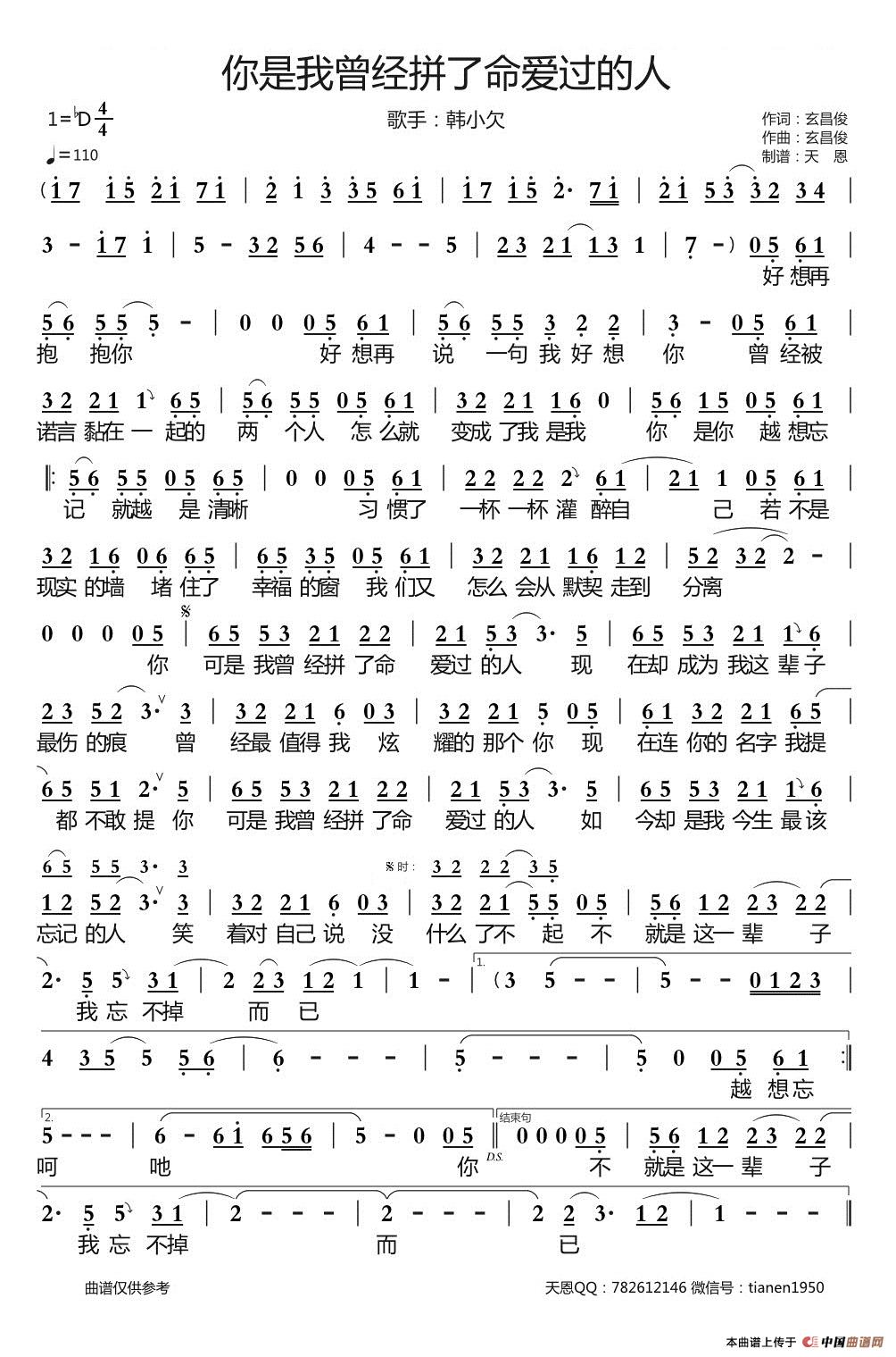 关于《你是我曾经拼了命爱过的人》曲谱的评论