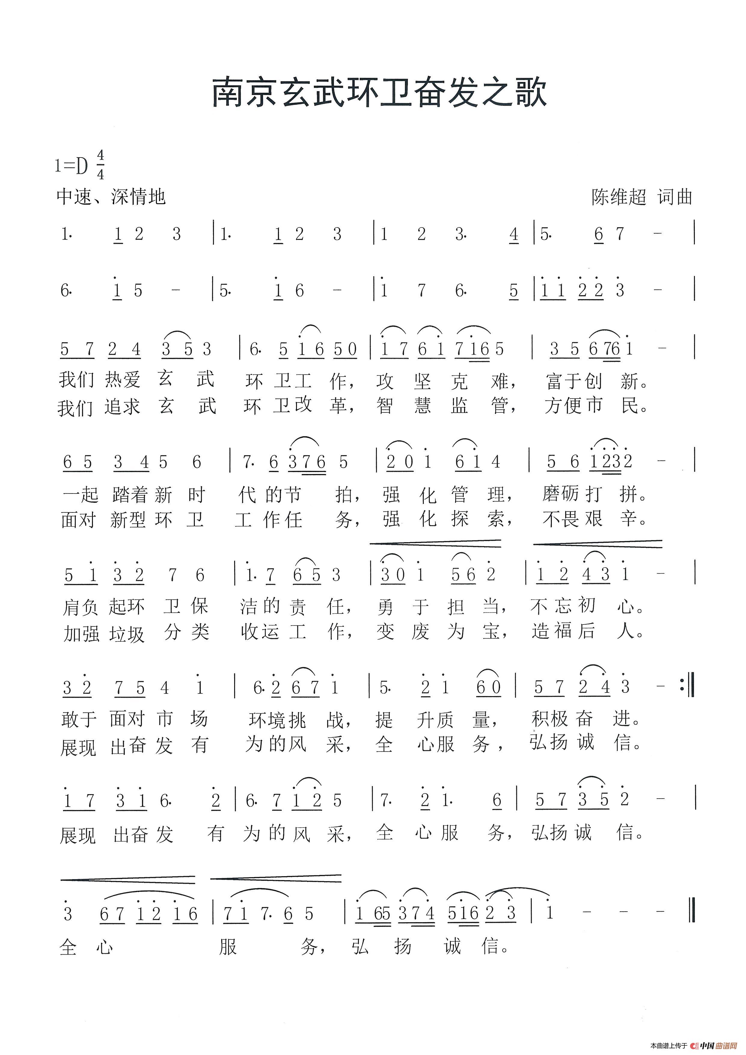 陈维超说,创作《南京玄武环卫奋发之歌》这一歌曲的主要目的是进一步激励玄武环卫人“展现出奋发有为的风采,全心服务,弘扬诚信。”